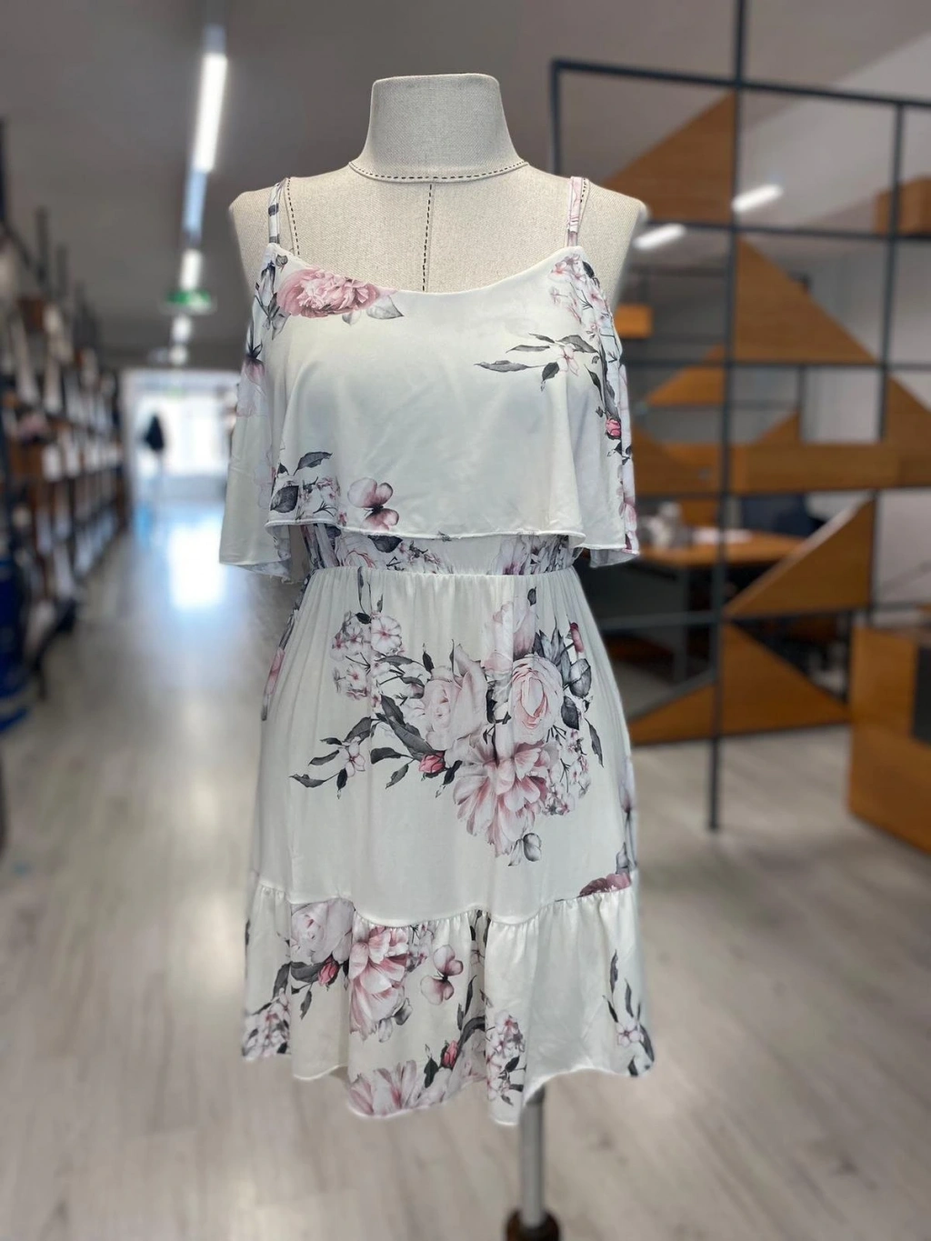 Kadın Gül Desenli Mikro Kumaş Mini Elbise