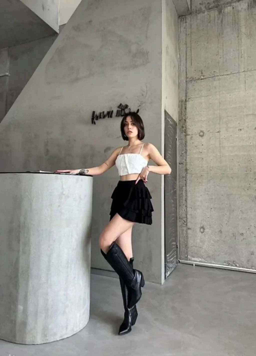 Modelin Ölçüleri: Boy:165, Kg:55, Göğüs:90, Bel:72, Kalça: 100