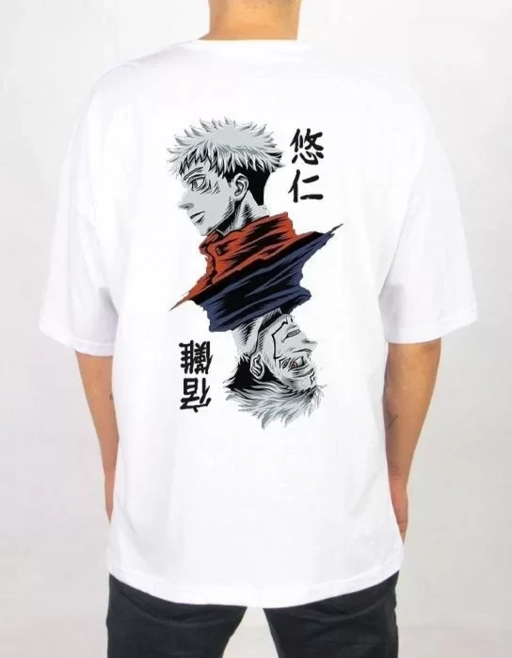 Unisex Bisiklet Yaka Baskılı Oversize T-Shirt - Beyaz