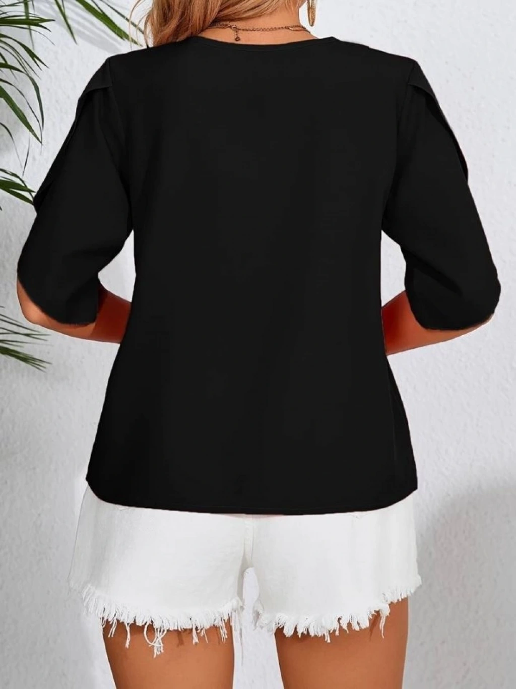 Kadın Kısa Kollu Yaka Ve Kol Detay Jesica Bluz
