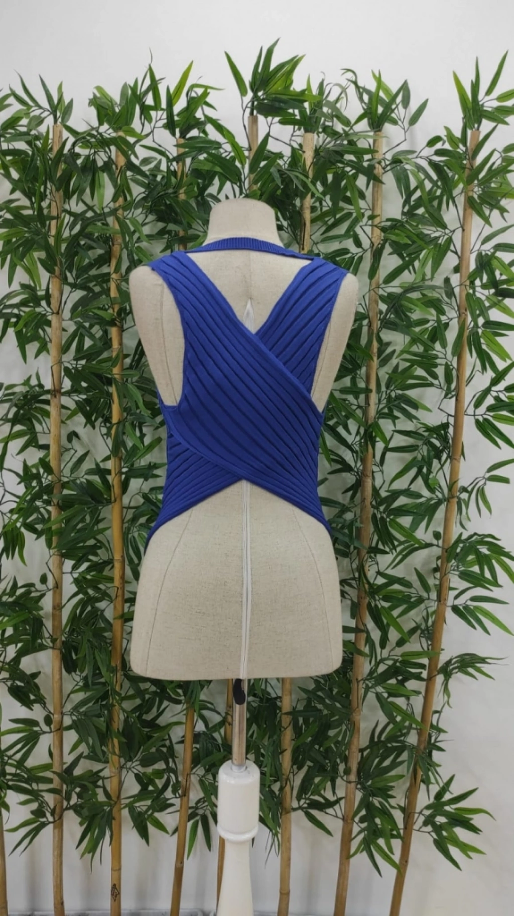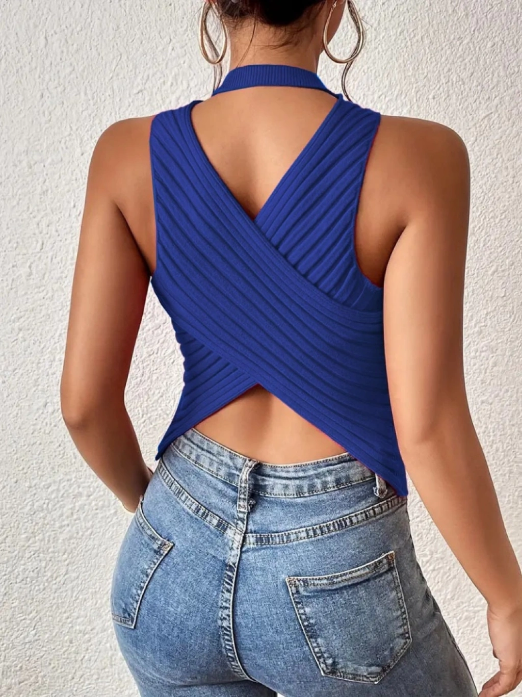 Kadın Kolsuz Sırt çapraz Detay Triko Bluz