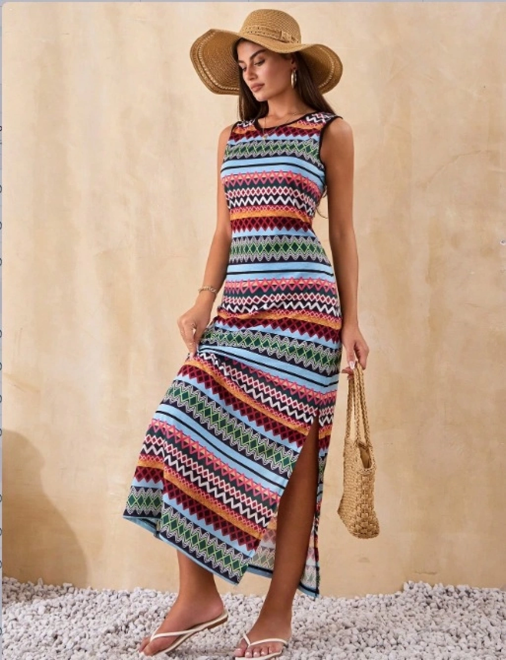 Kadın Bisiklet Yaka Cizgi Desen Süprem Elbise