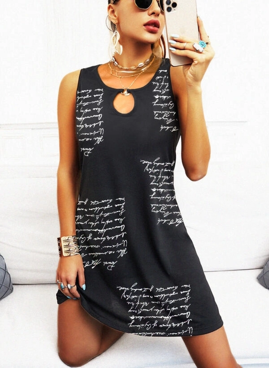 Kadın Kolsuz Halka Detay Mektup Desenli Mikro Elbise
