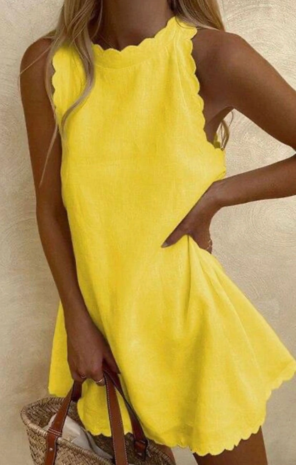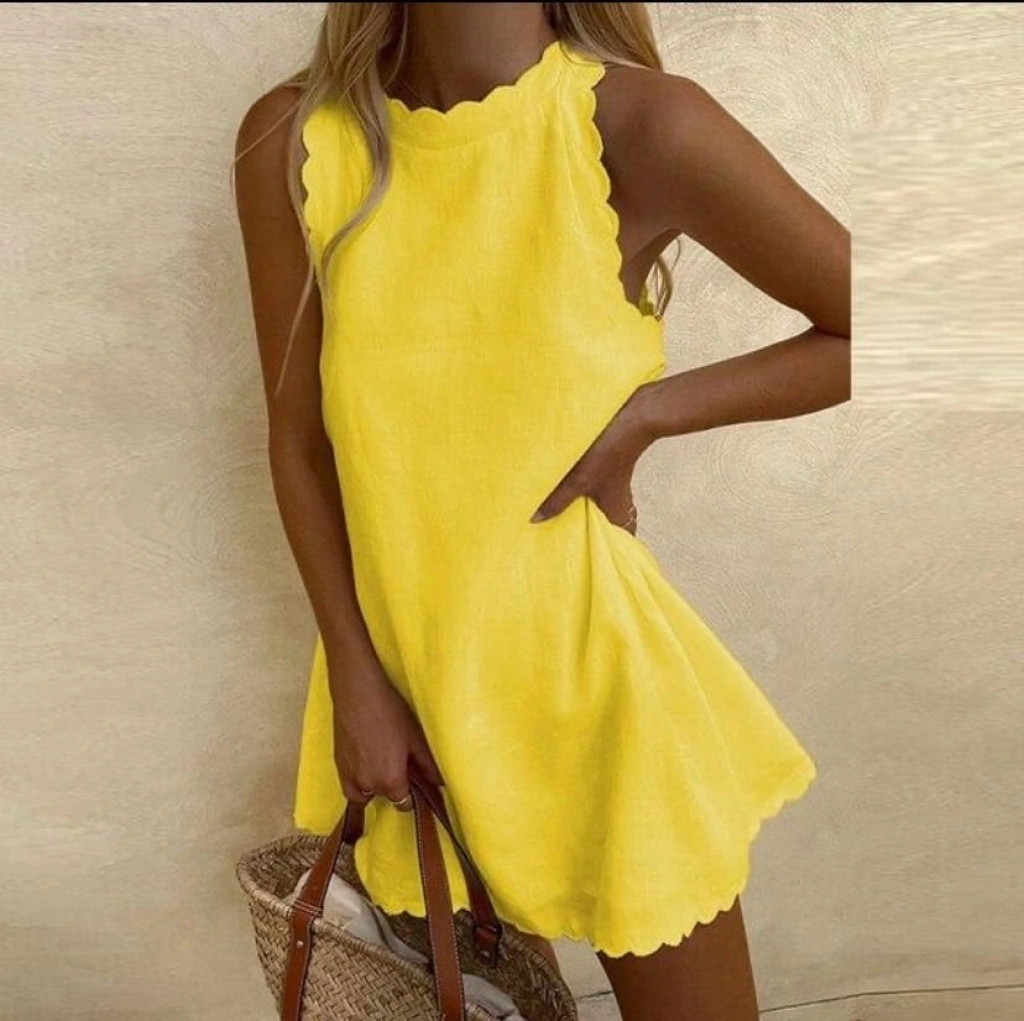 Kadın Keten Kumaş Sıfır Kol Mini Boy Elbise