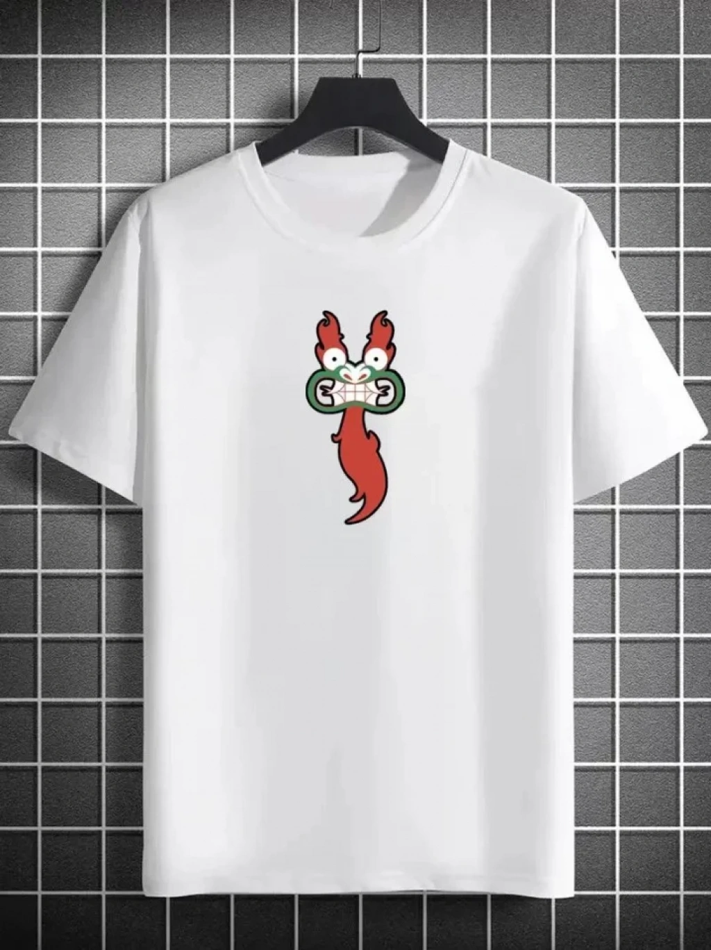 Unisex Bisiklet Yaka Baskılı Oversize T-Shirt - Beyaz