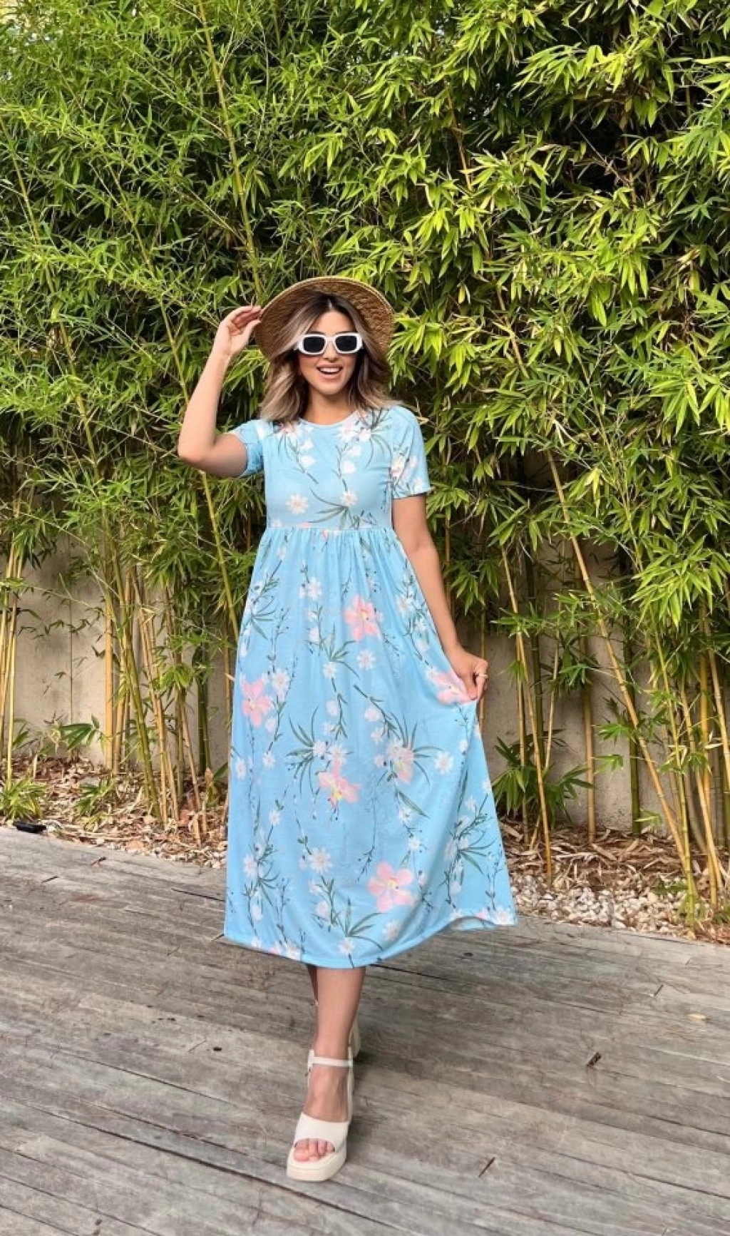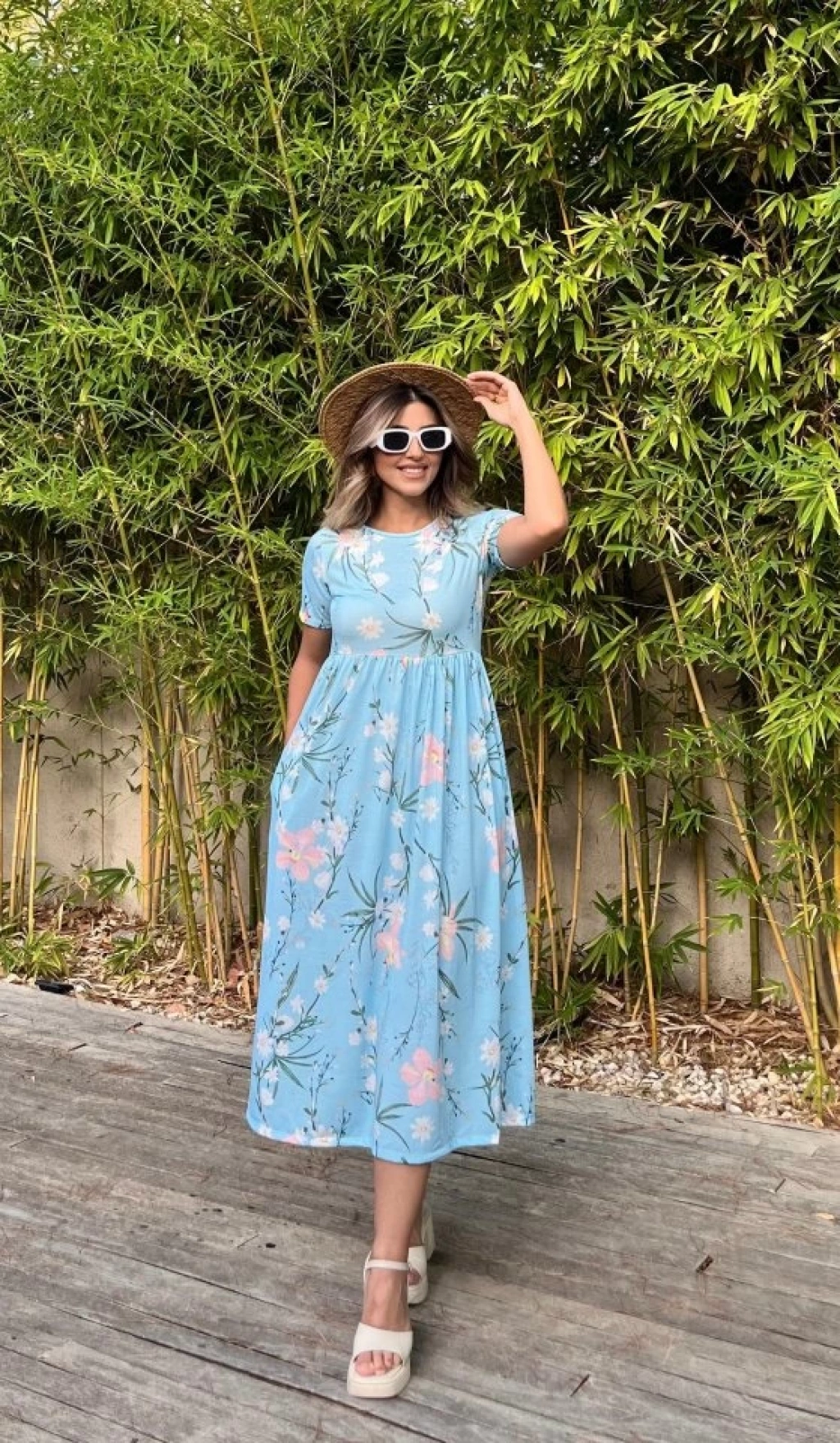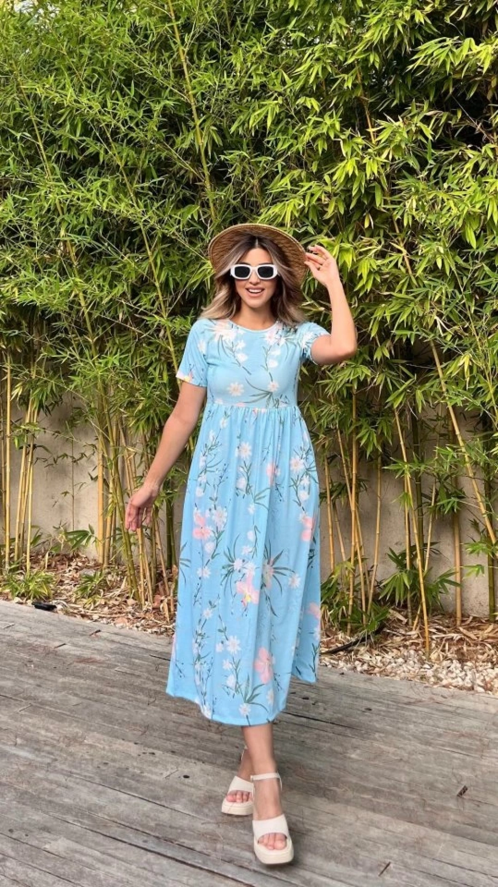 Kadın Kısa Kollu çiçek Baskı Midi Boy Süprem Elbise
