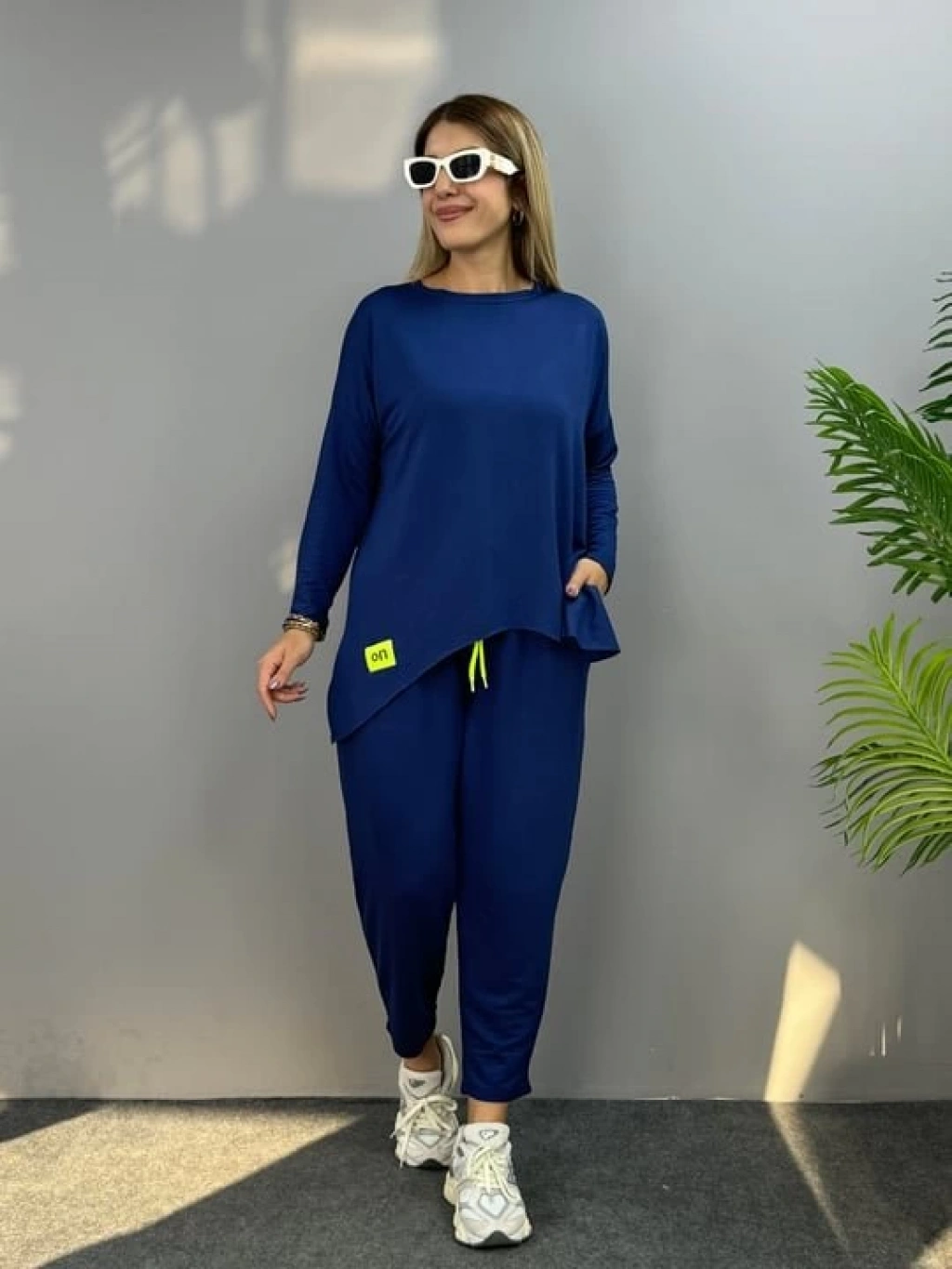 Kadın Iki Iplik Viskon Pamuk Kumaş Arma Detaylı Ikili Takım