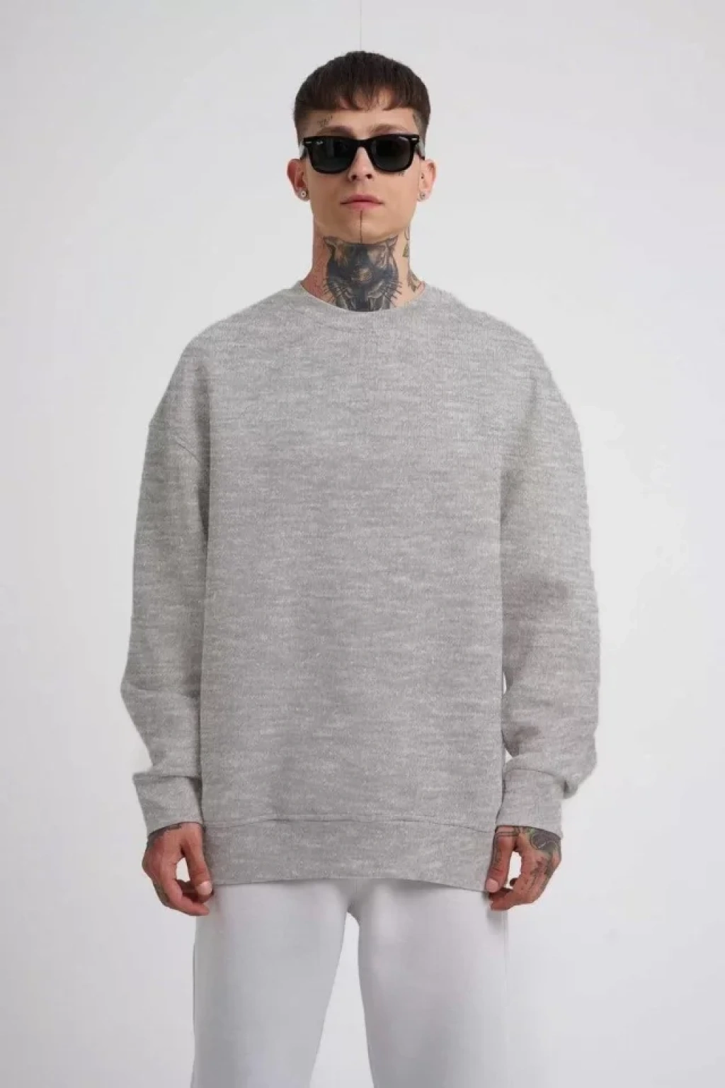 Unisex Biskilet Yaka Üç İplik SweatShirt - Gri