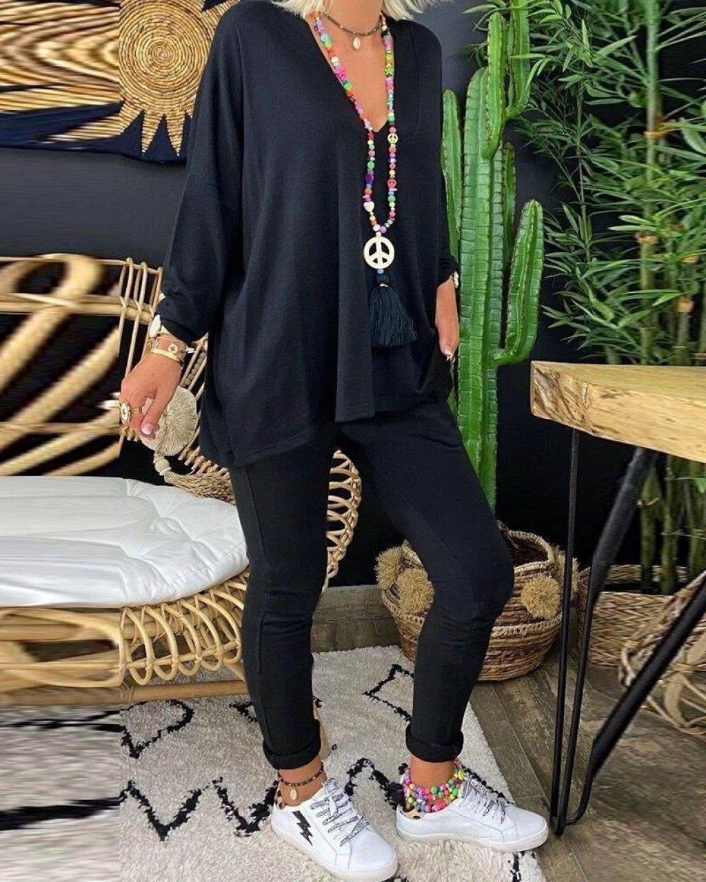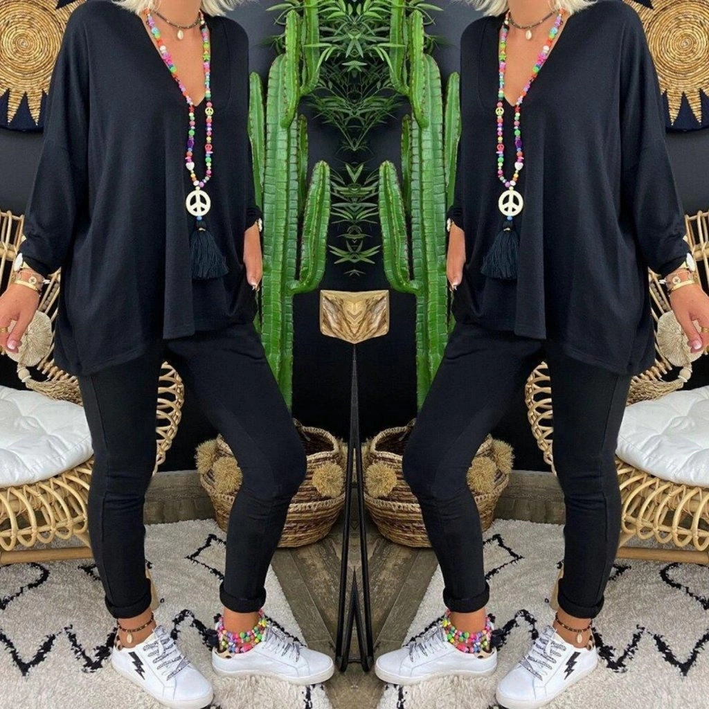 Kadın Uzun Kollu Derin V Yaka ön Kısa Arka Uzun Viskon Bluz