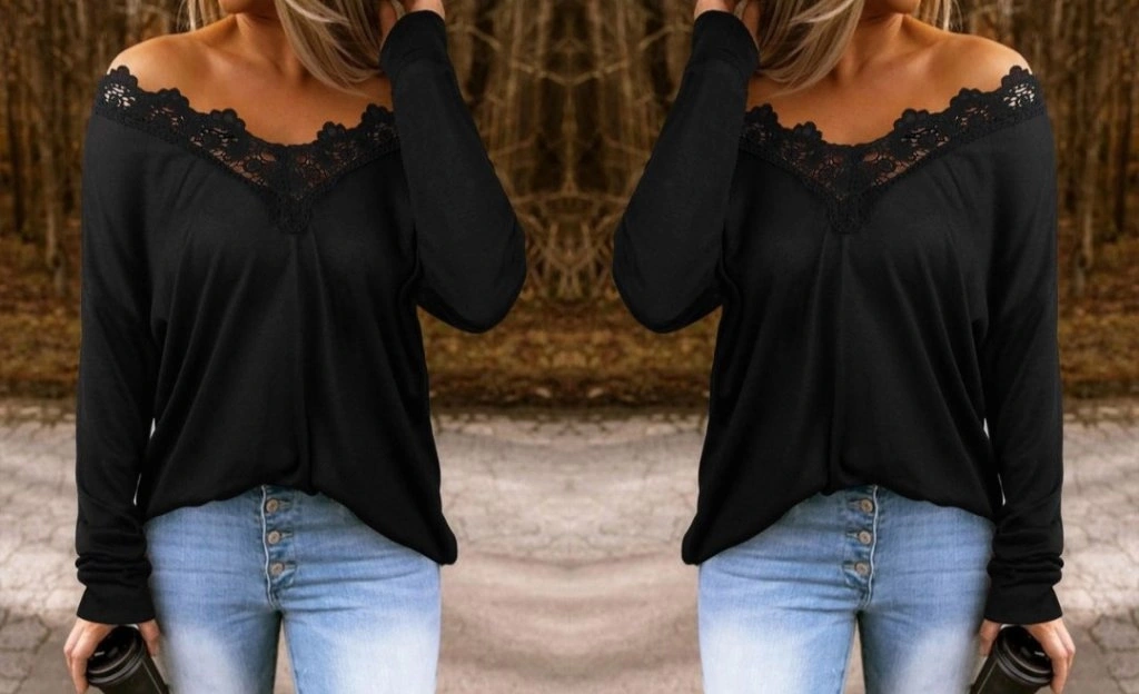 Kadın Uzun Kollu Yaka Güpür Detay Viskon Bluz