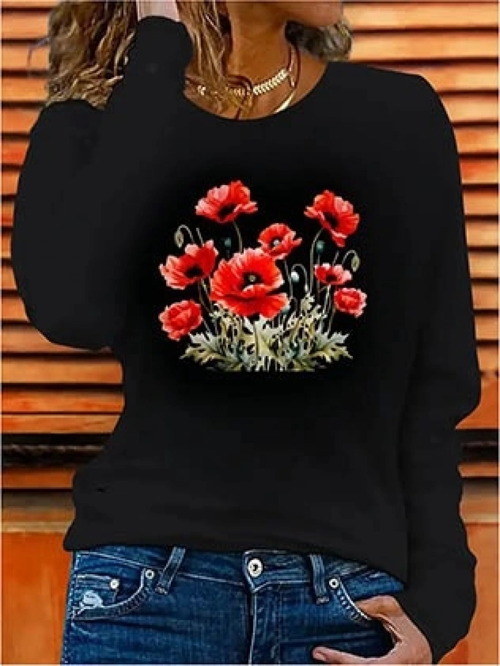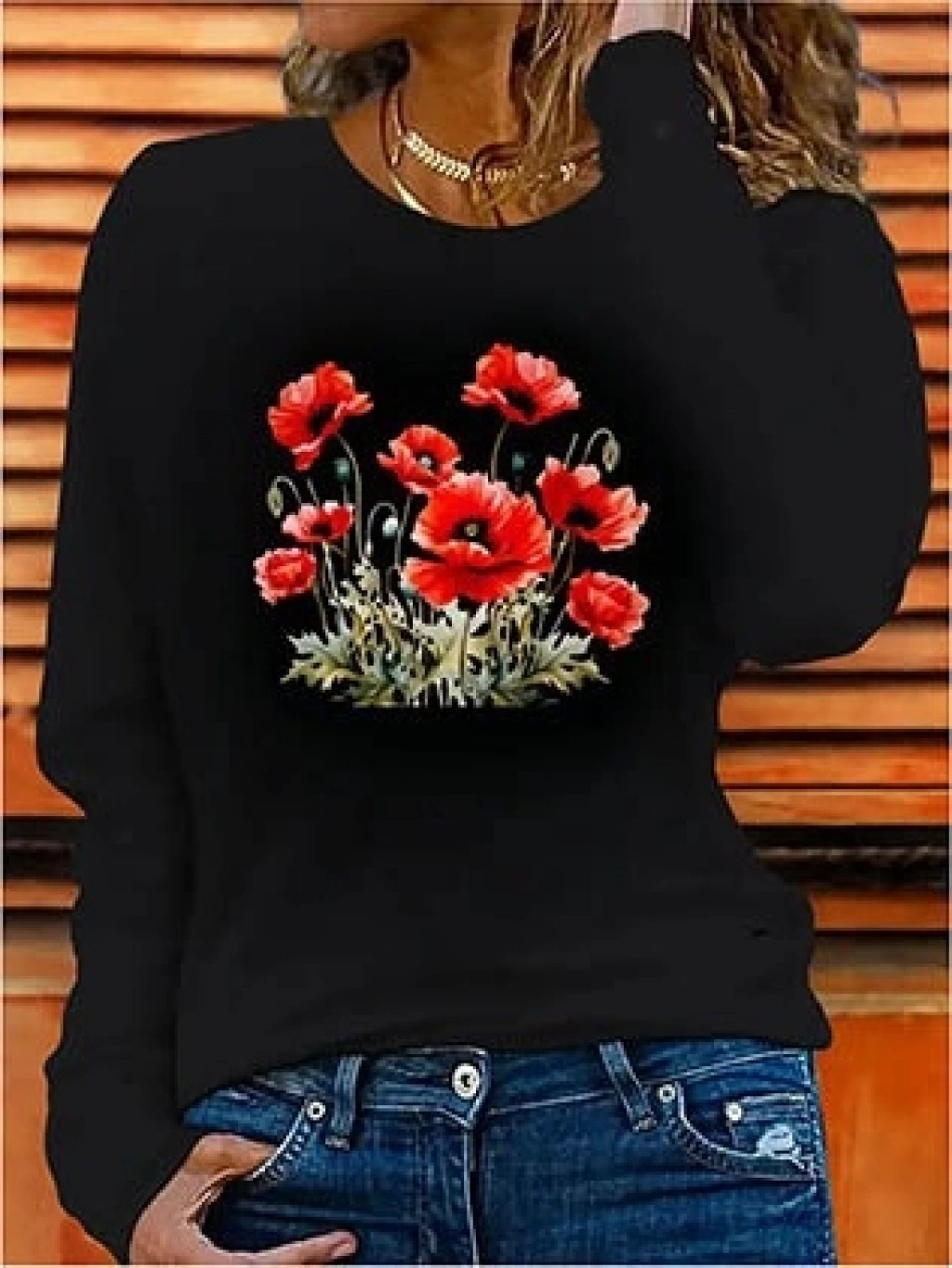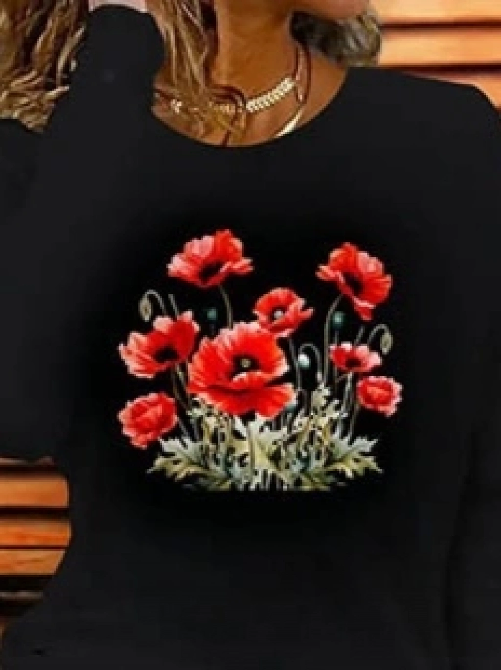 Kadın Uzun Kollu Bisiklet Yaka Baskılı Viskon Bluz