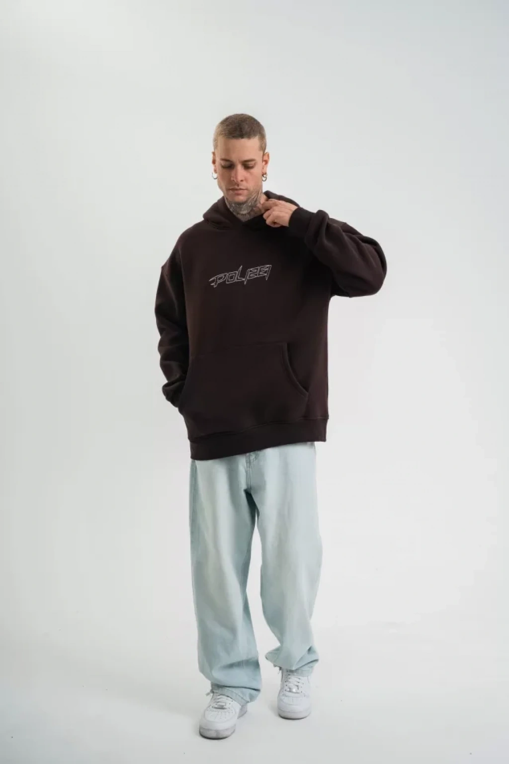 Unisex Üç İplik Kapşonlu Nakışlı SweatShirt - Kahve
