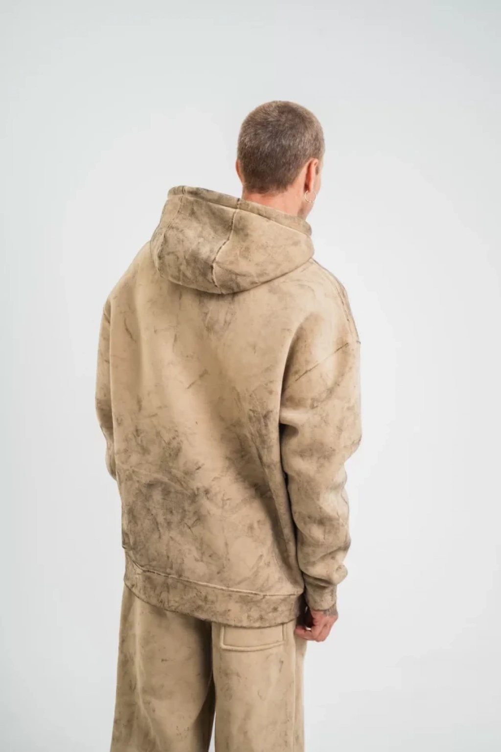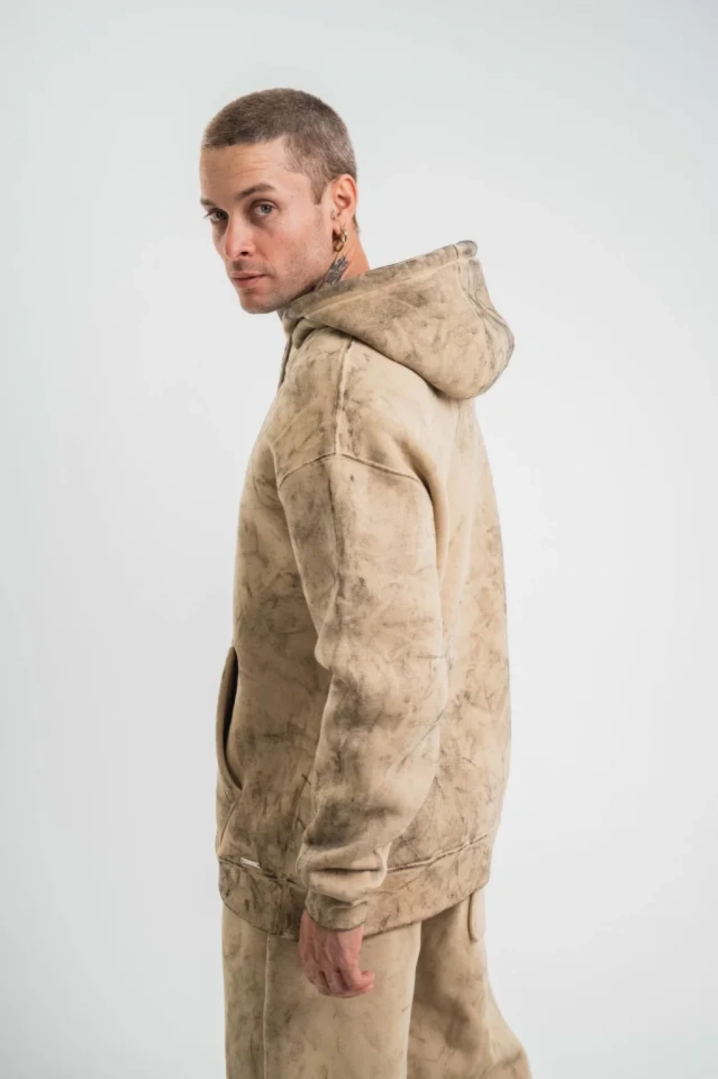 Unisex Double Oversize Kapşonlu Yıkamalı SweatShirt - Bej