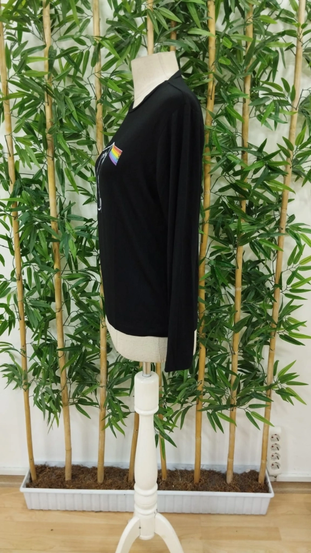 Kadın Uzun Kollu Bisiklet Yaka Baskılı Iki Iplik Bluz