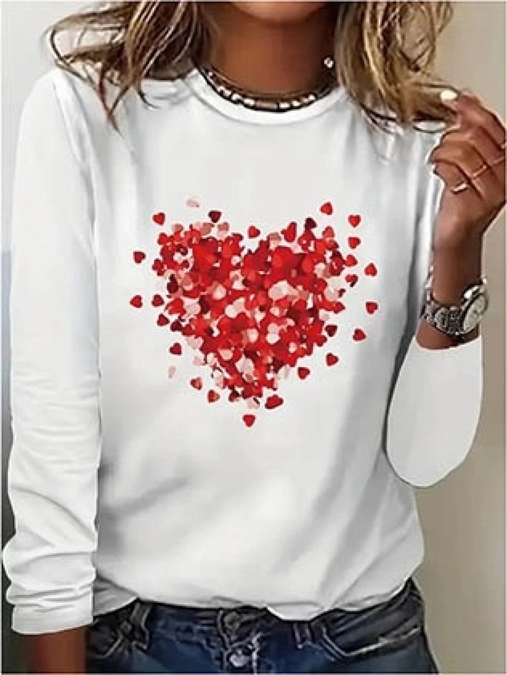 Kadın Uzun Kollu Bisiklet Yaka Baskılı Viskon Bluz