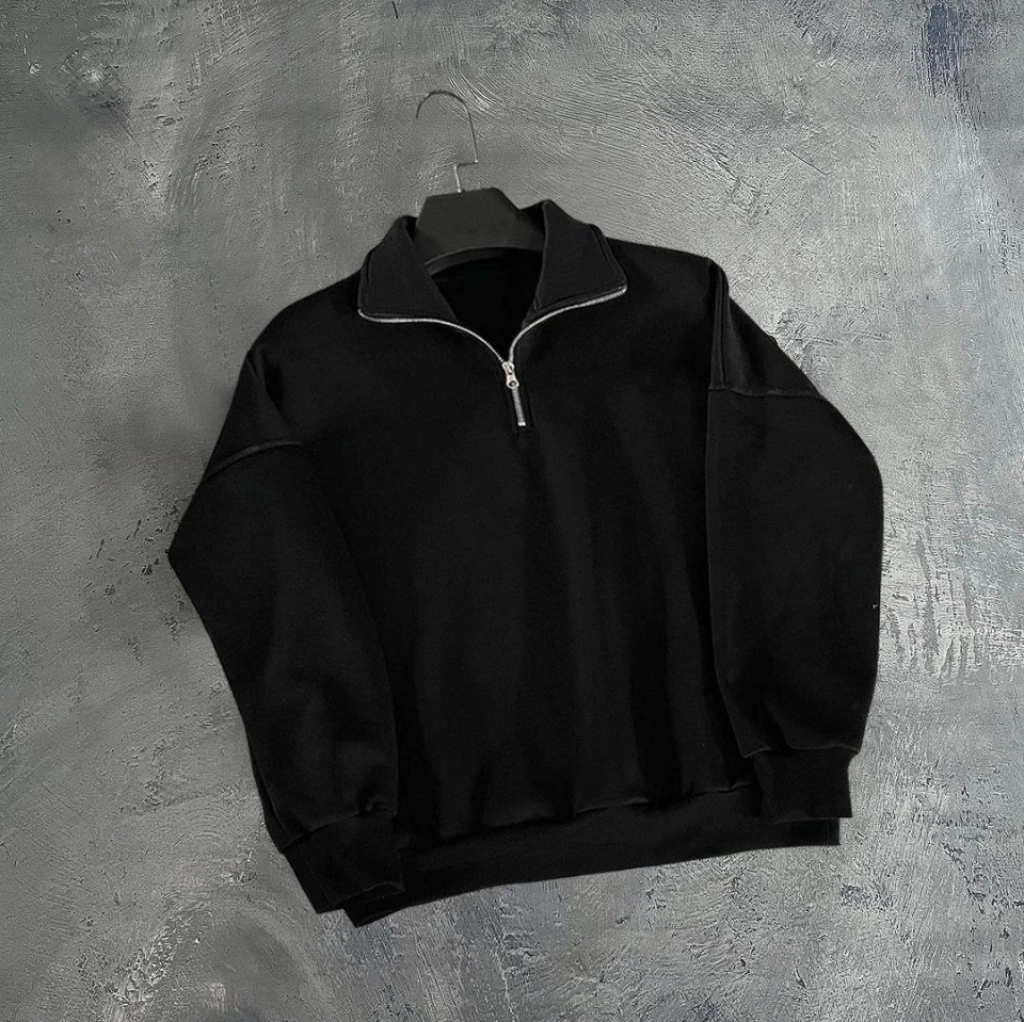 Erkek Yarım Fermuarlı Üç İplik Sweatshirt - Siyah