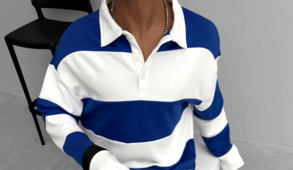 Unisex Üç İplik Parçalı Yakalı SweatShirt - Mavi