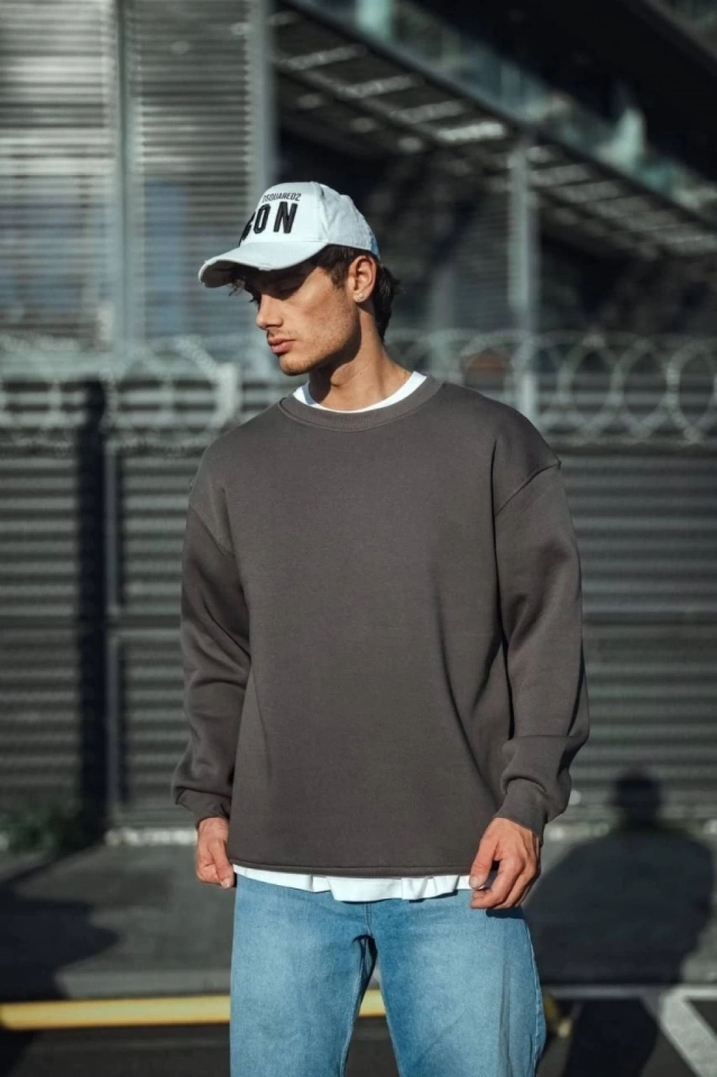 Kışlık Bisiklet Yaka Üç İplik Basic SweatShirt - Antrasit