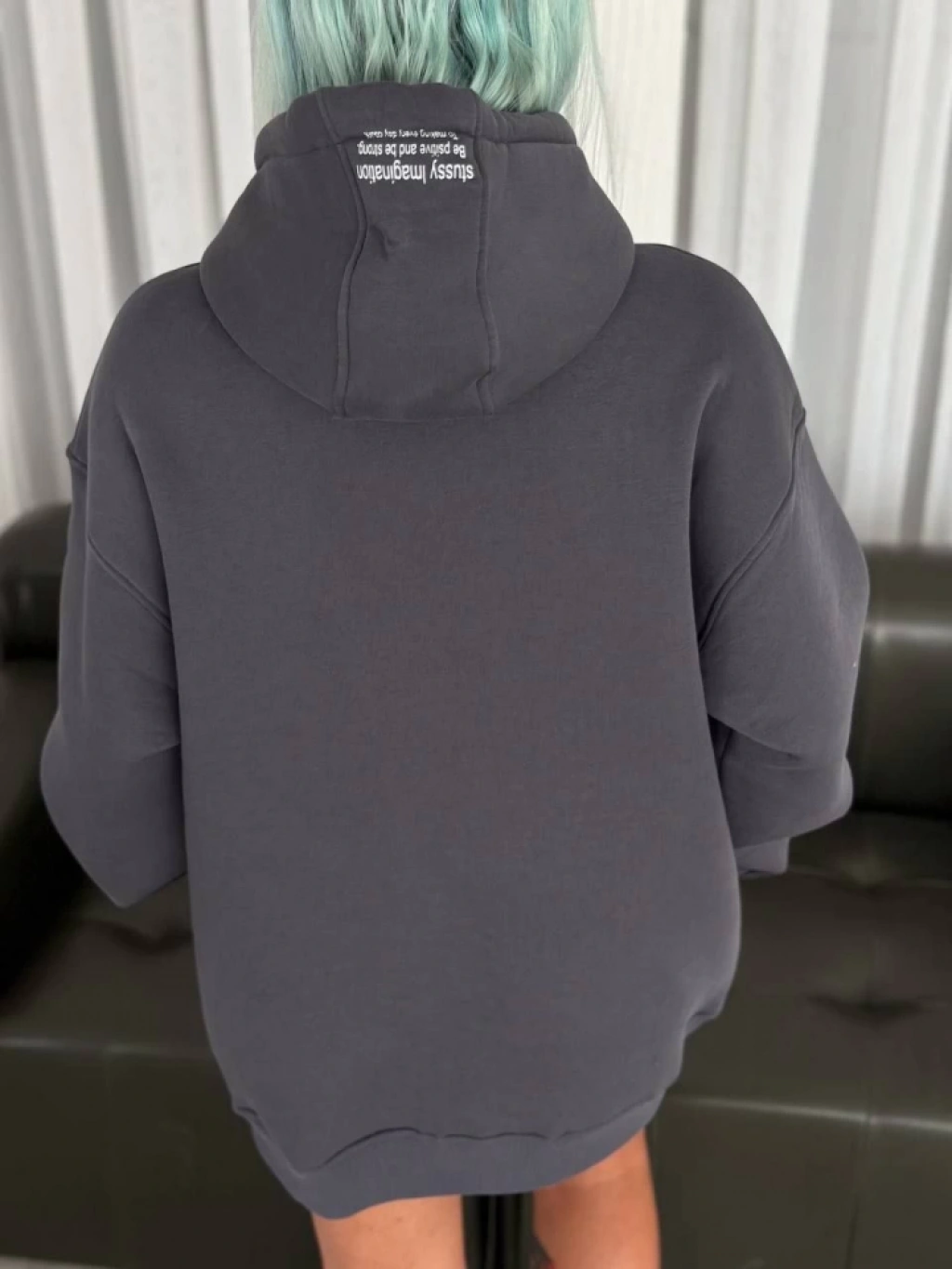 Üç İplik Kapşonlu Baskılı SweatShirt - Füme