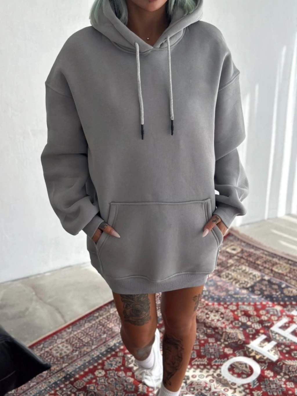 Kapşonlu Üç İplik Penye Basic SweatShirt - Boyalı Gri