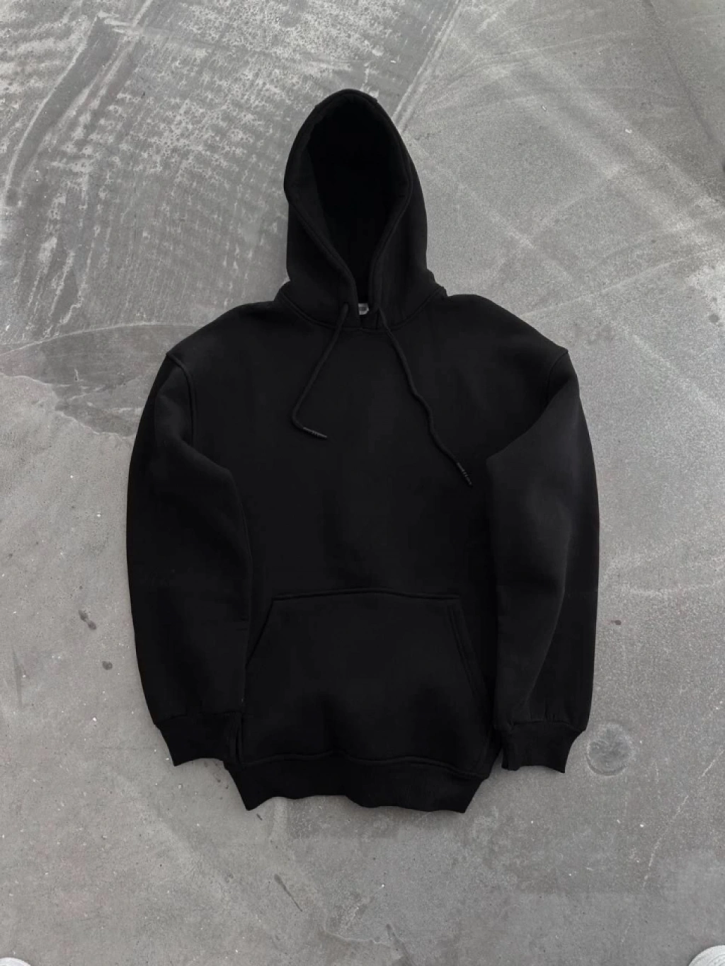 Kapşonlu Üç İplik Penye Basic SweatShirt - Siyah