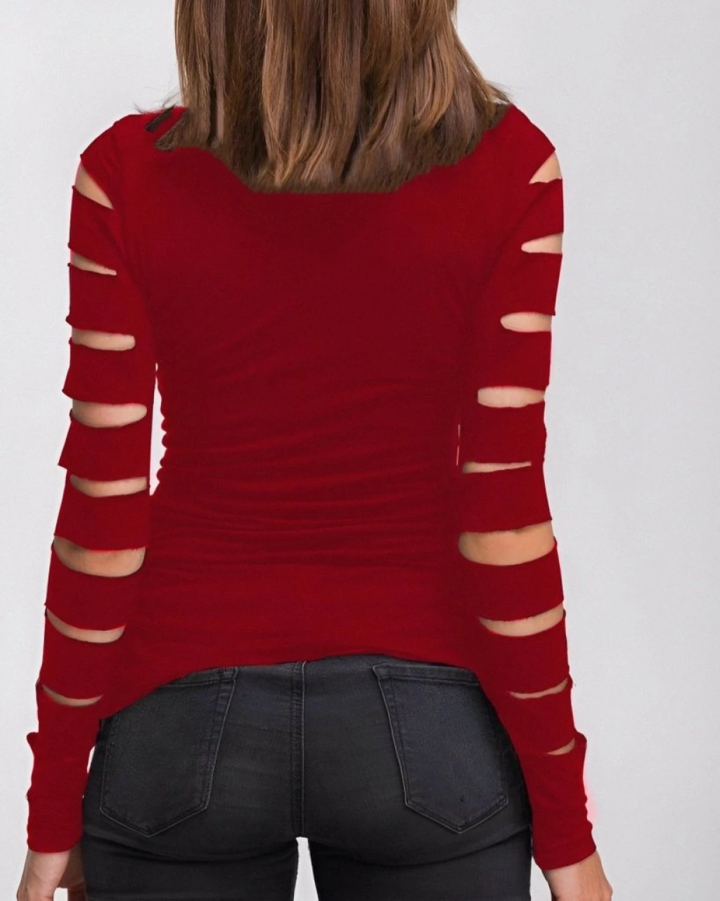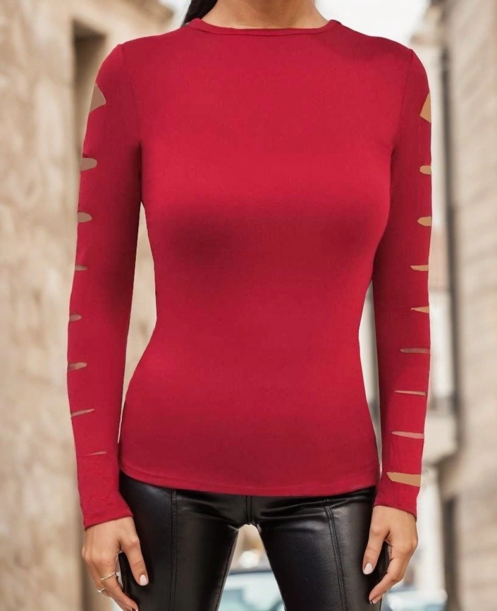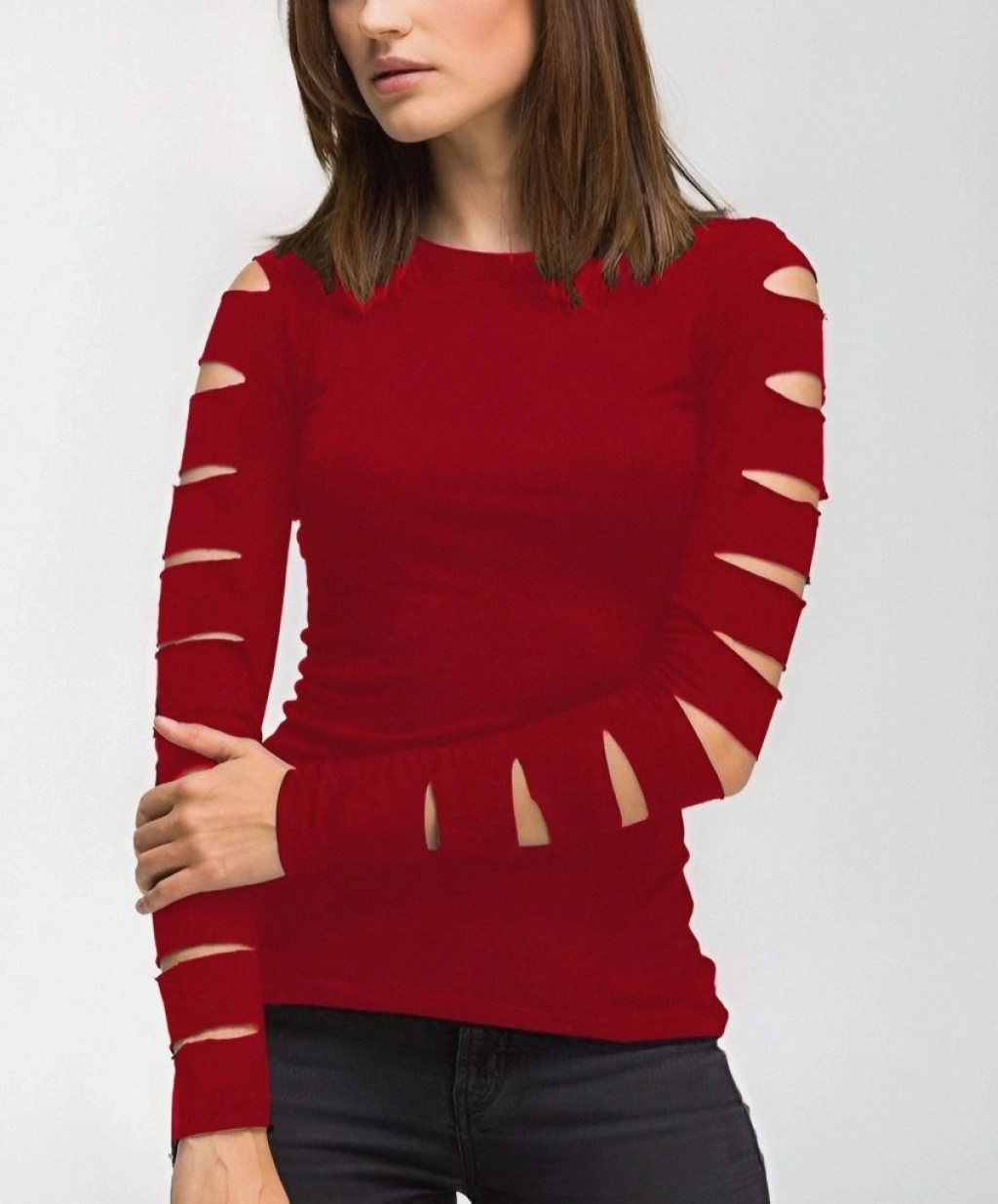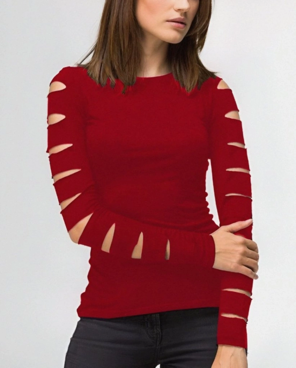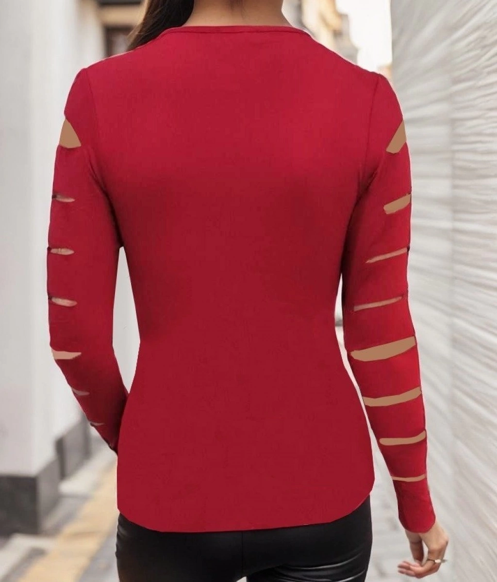 Kadın Uzun Kollu Bisiklet Yaka Lazer Kesim Viskon Bluz