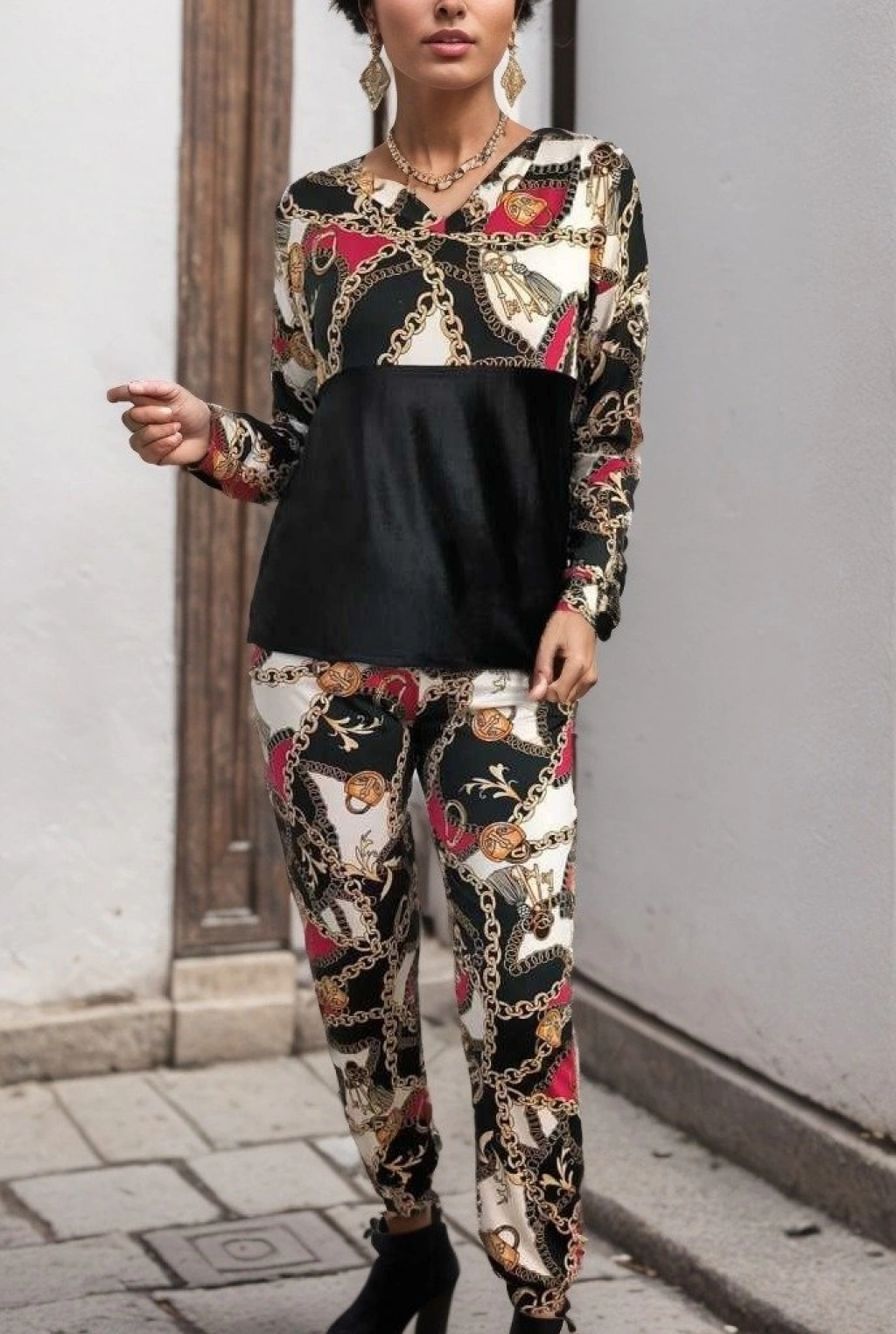 Kadın Uzun Kollu V Yaka Göğüs Altı Kadife Detay Mikro Ikili Takım