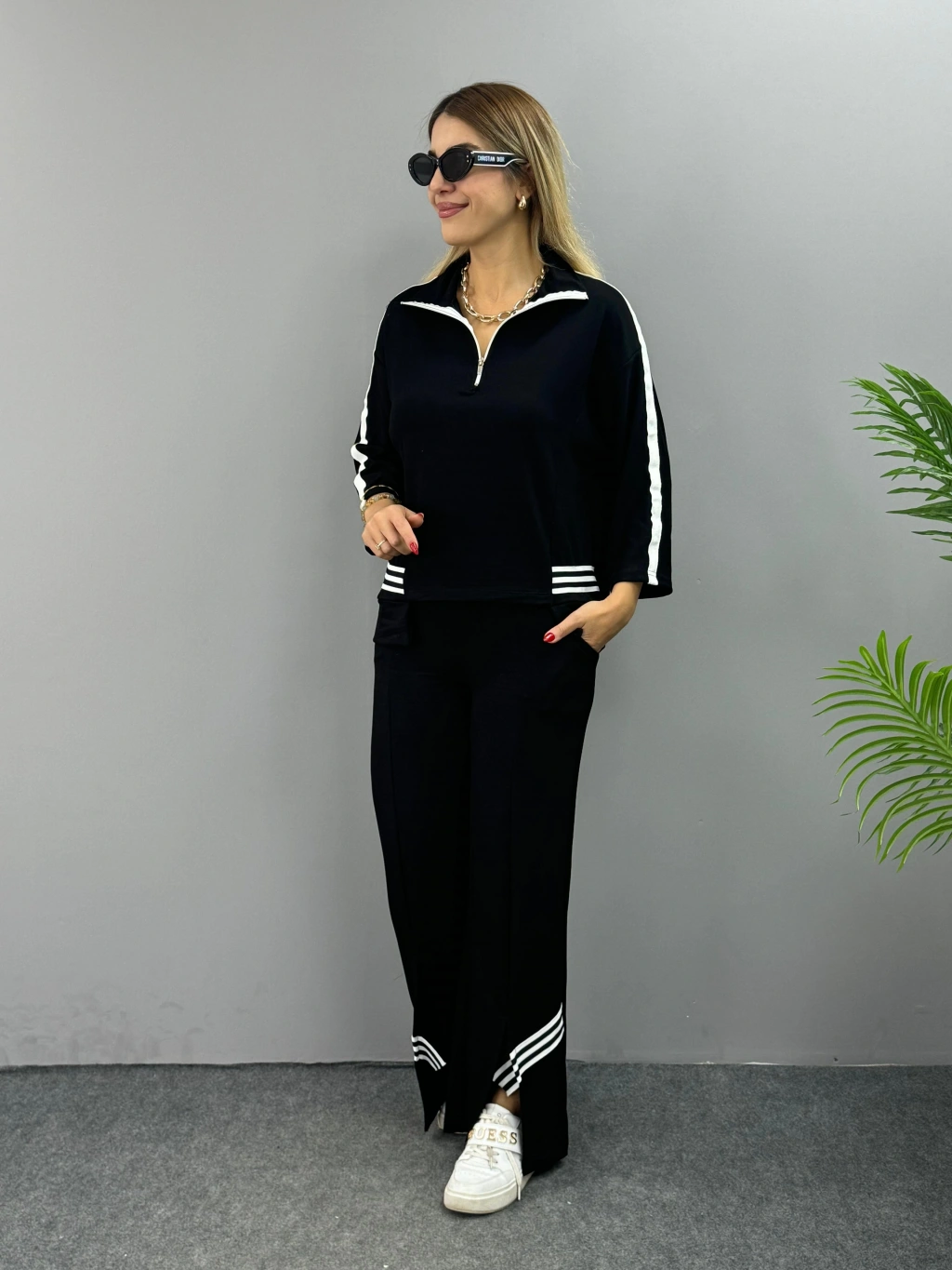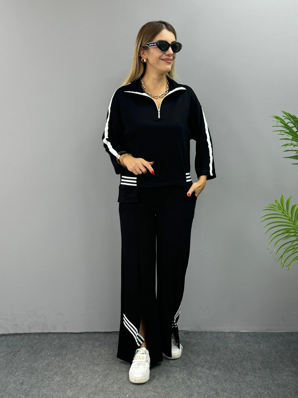 Kadın Polo Yaka Paça Yırtmaçlı Ribanalı İkili Takım