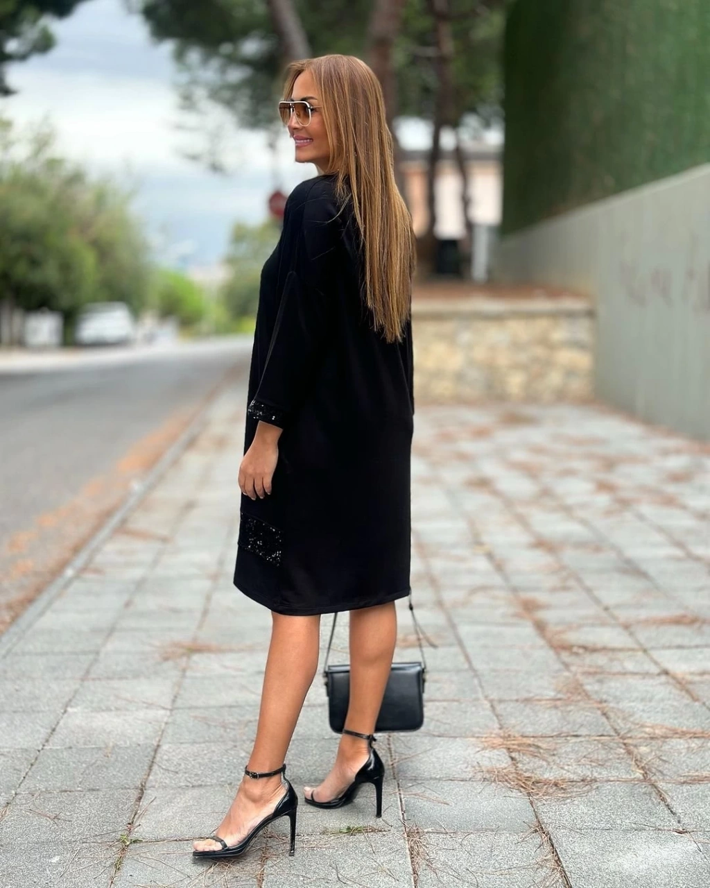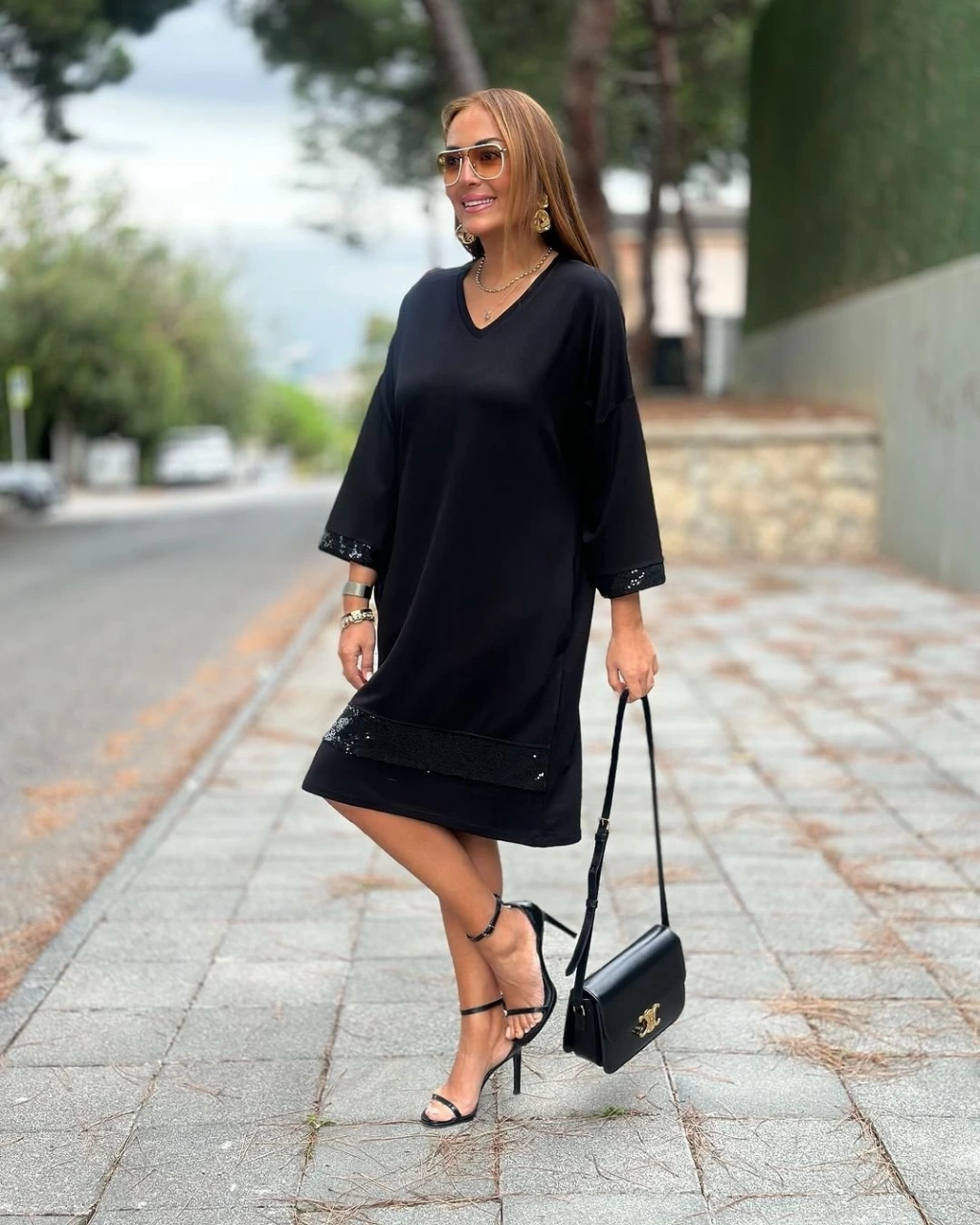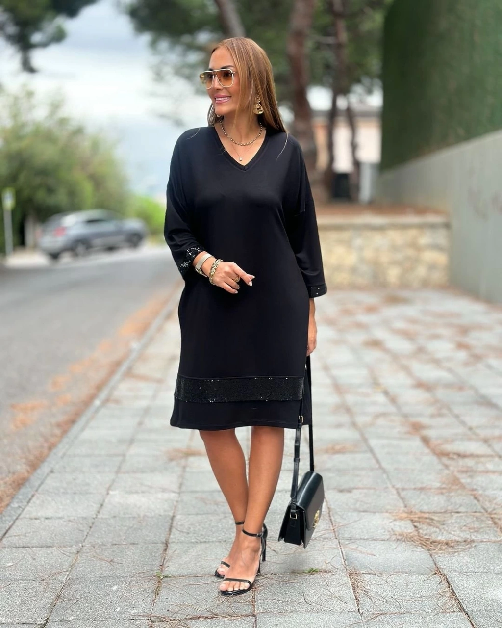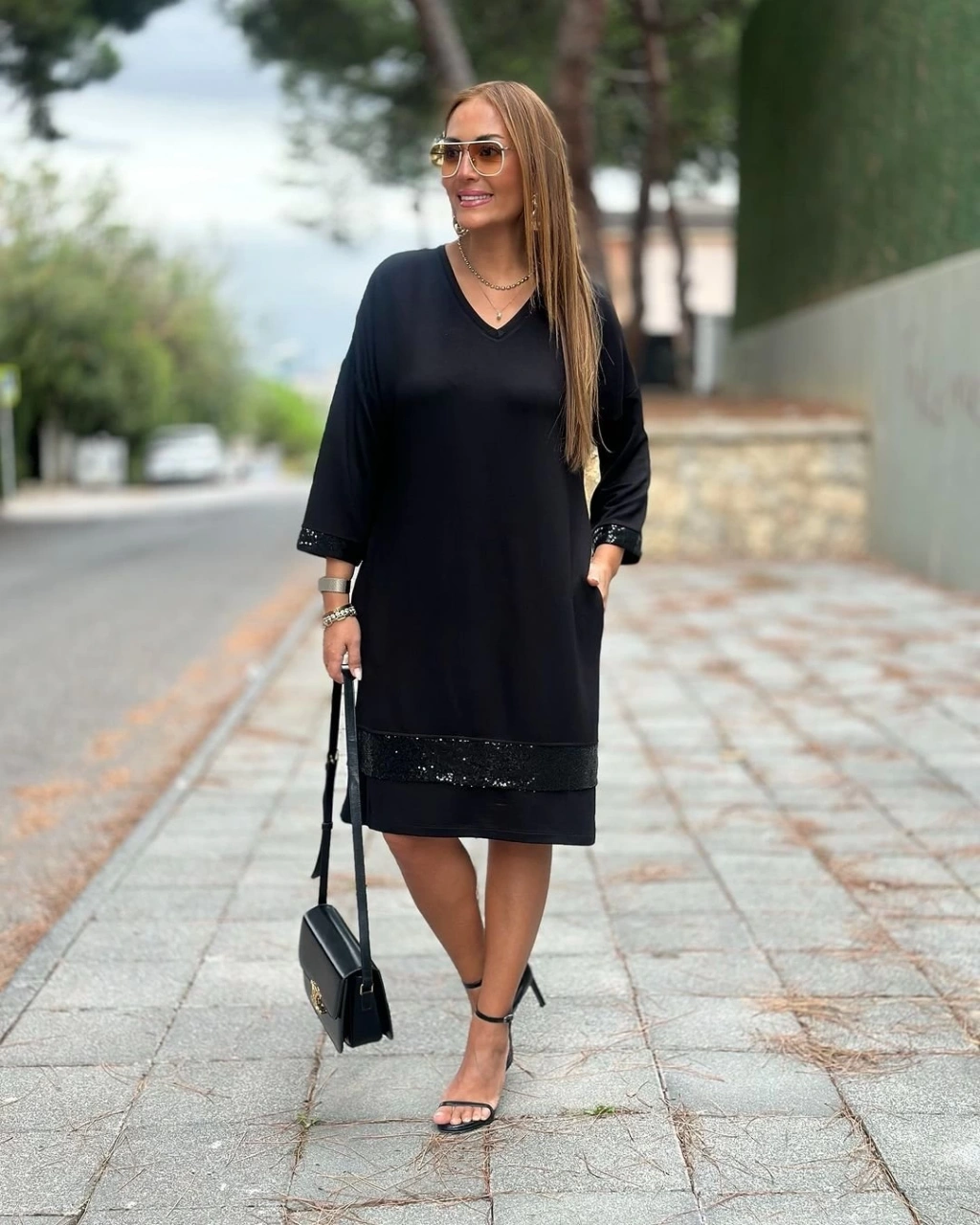 Kadın Modal Kumaş Kol Ve Etek Ucu Payetl Elbise