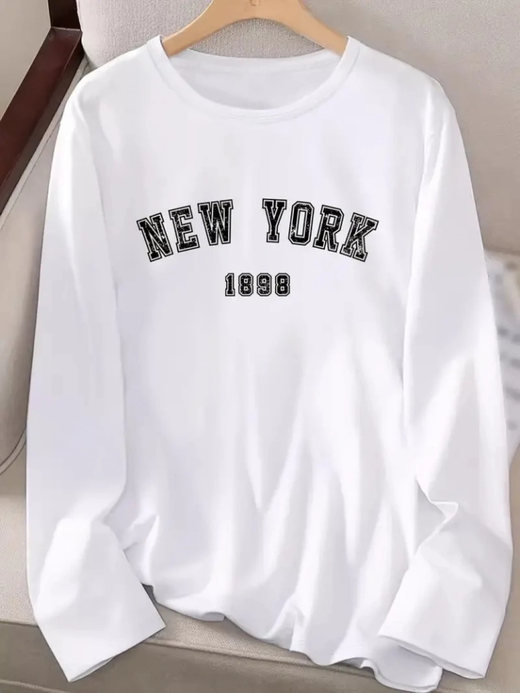 Kadın Uzun Kollu Bisiklet Yaka Yazı Baskılı Viskon Bluz