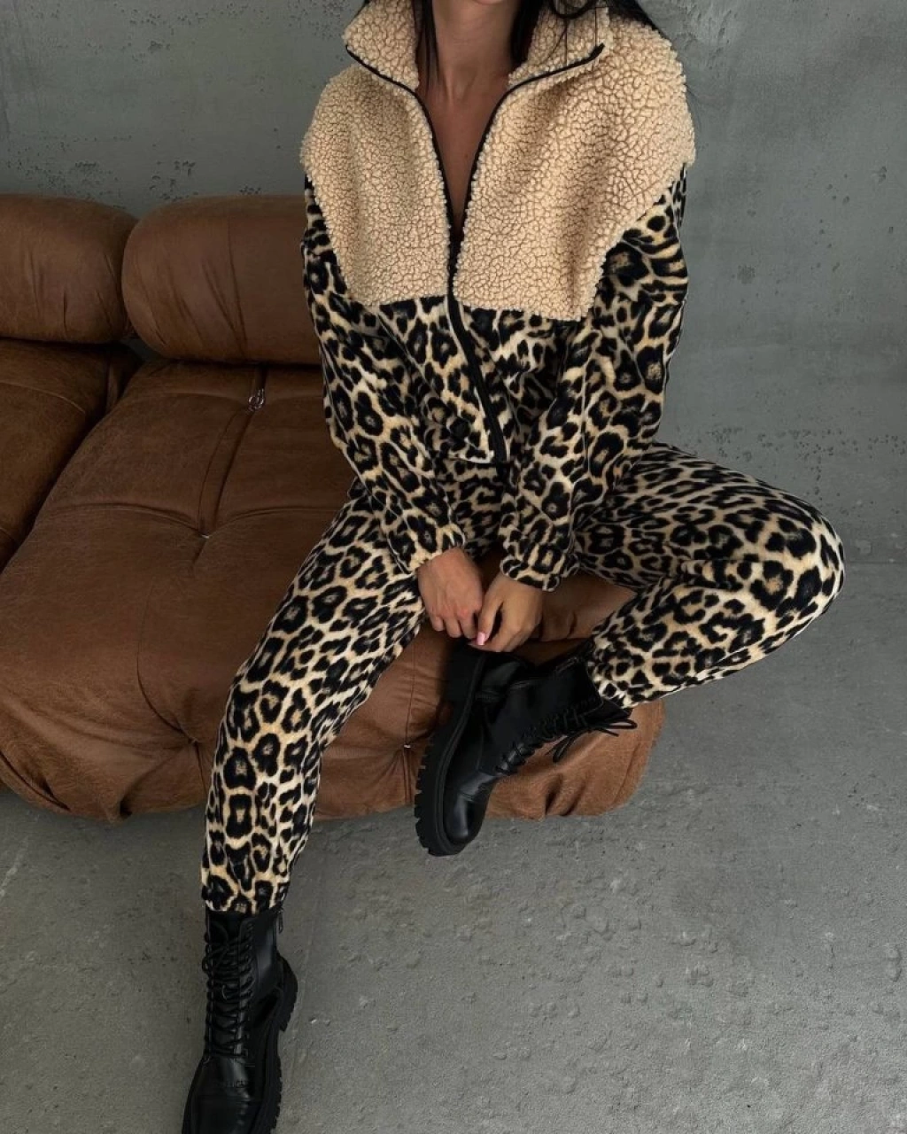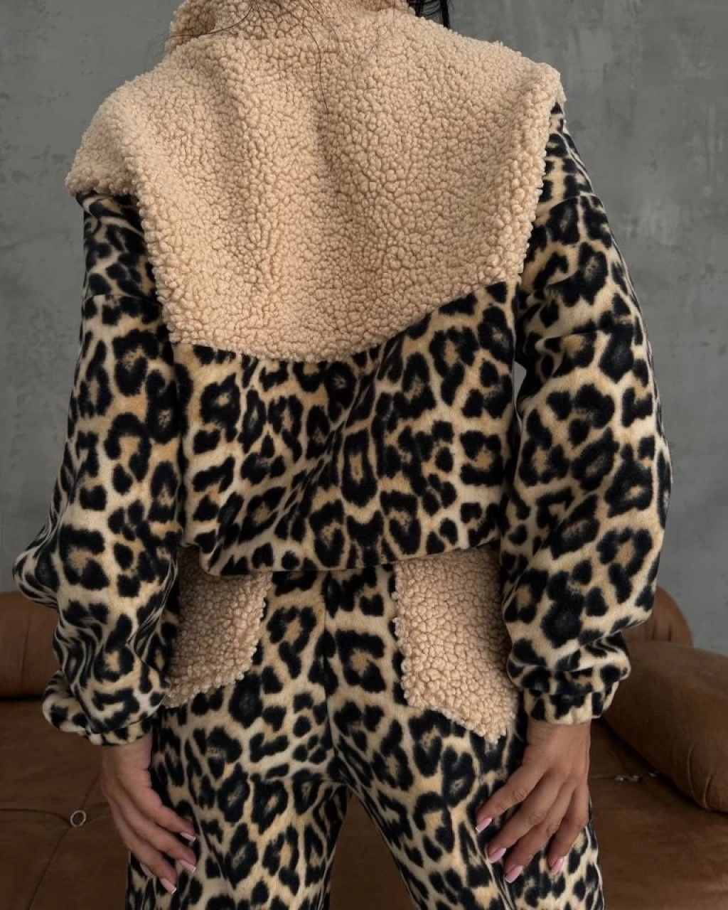 Kadın 3 Iplik Kumaş Leopar Desenli Ikili Takım