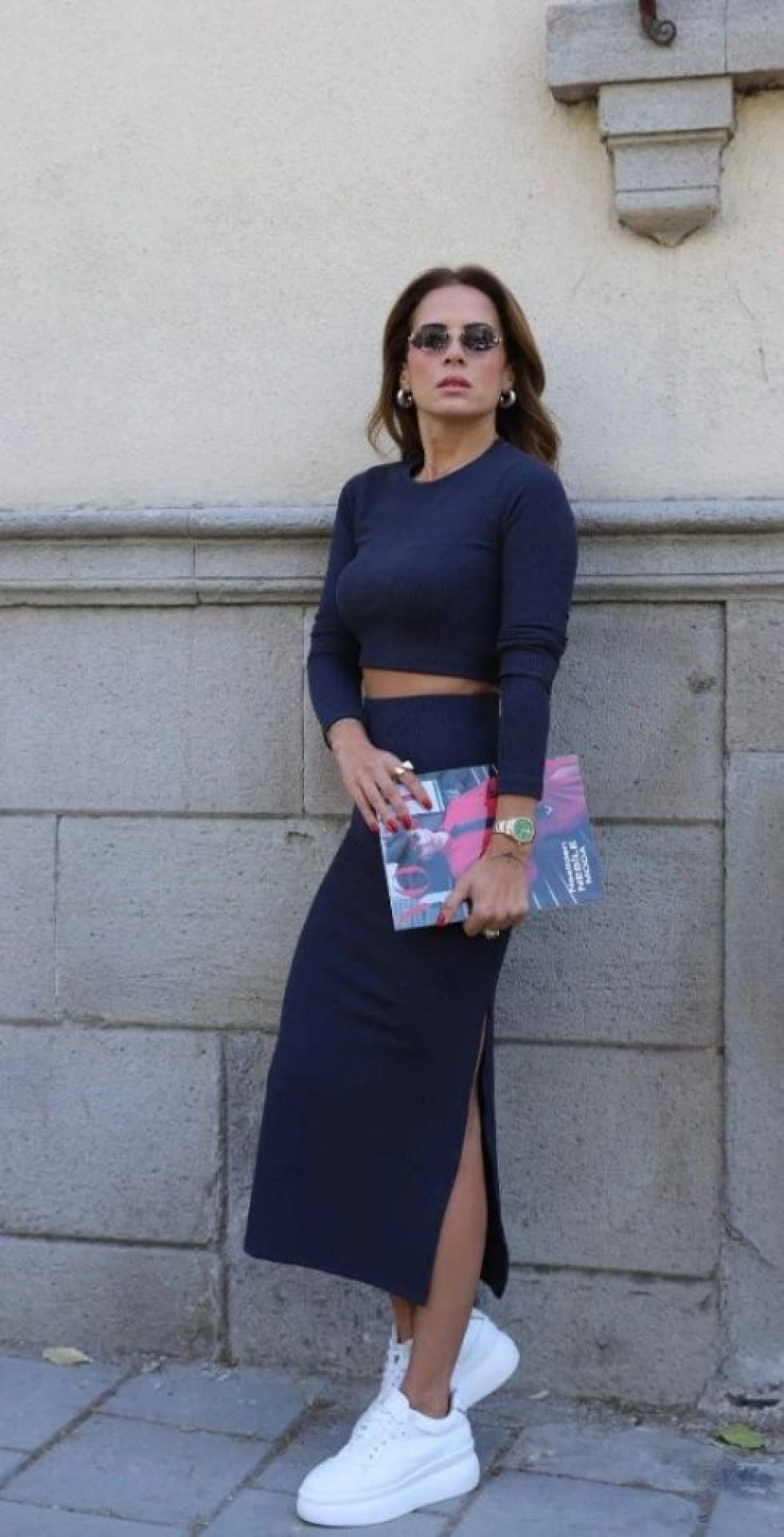 Kadın Soft Kaşkorse Kumaş Bluz Ve Yırtmaç Detaylı Etek Ikili Takım