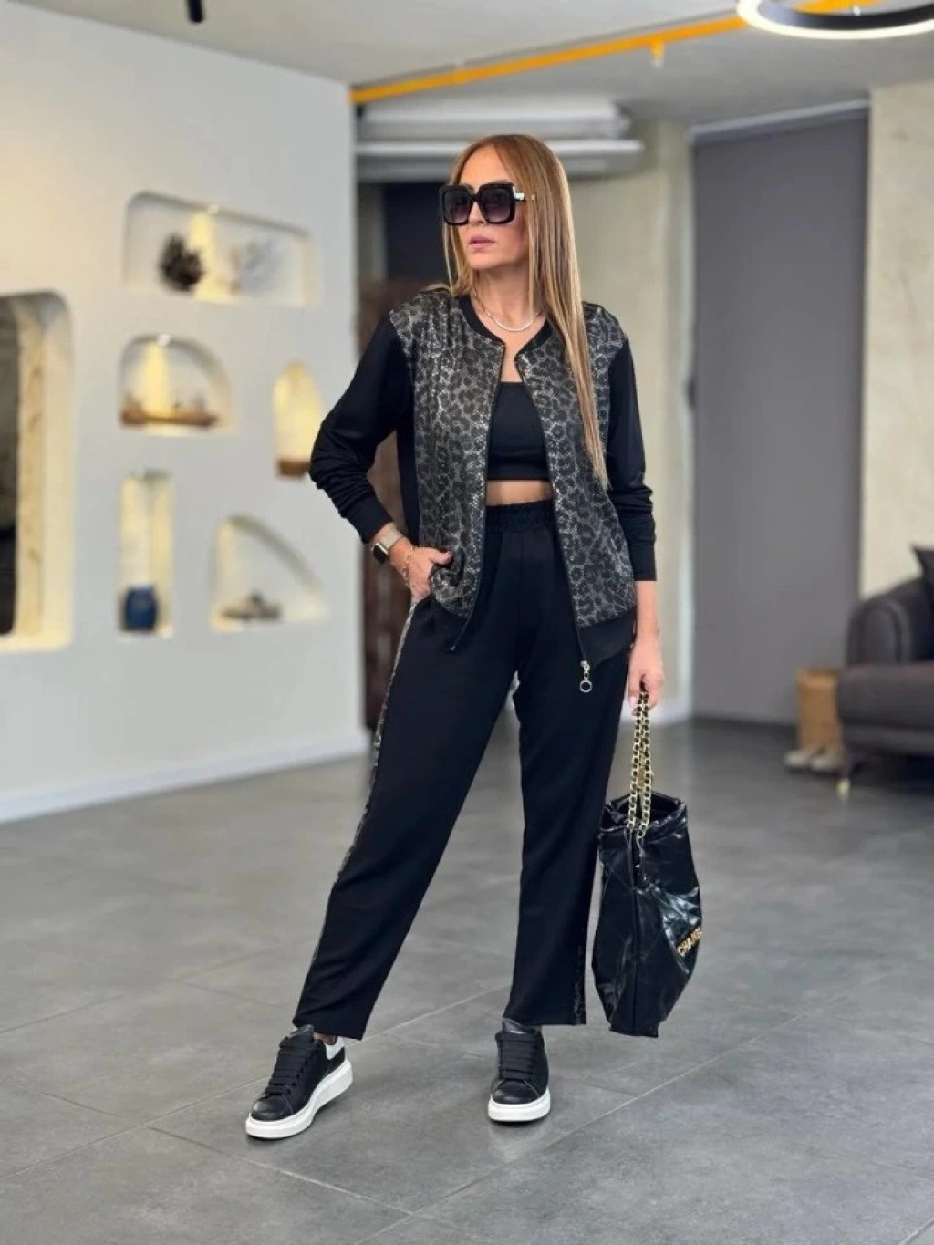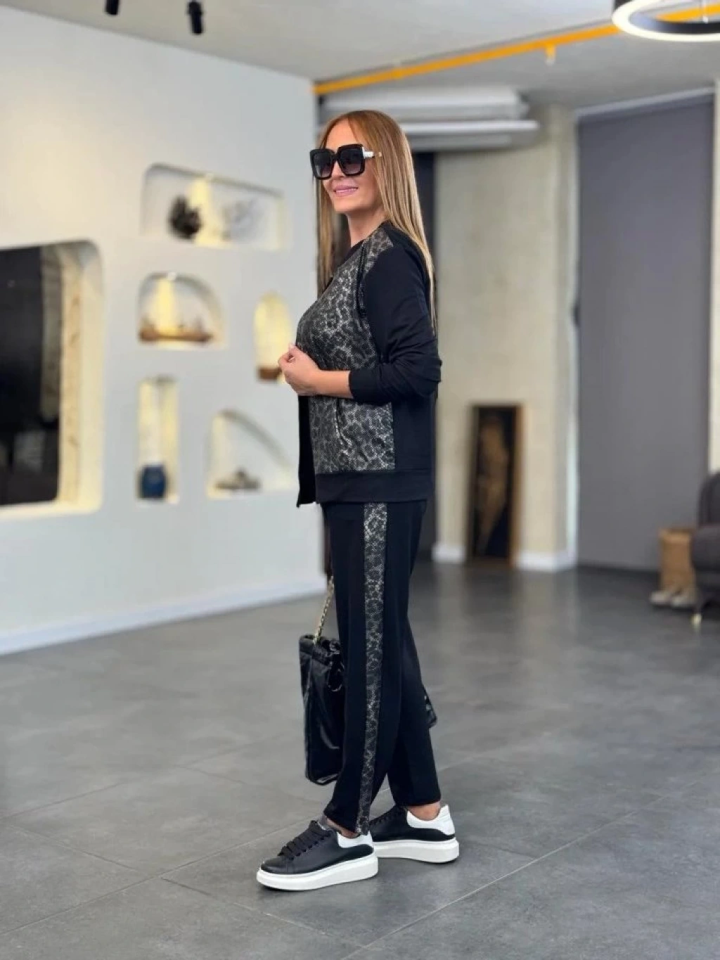 Kadın İki İplik Kumaş Yılan Desenli Fermuarlı İkili Takım