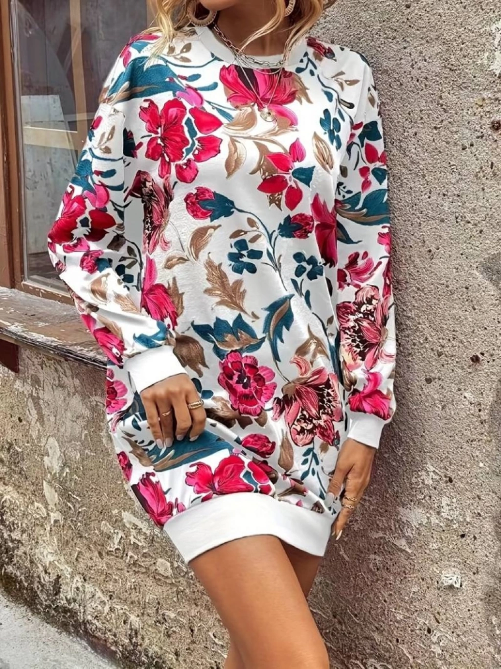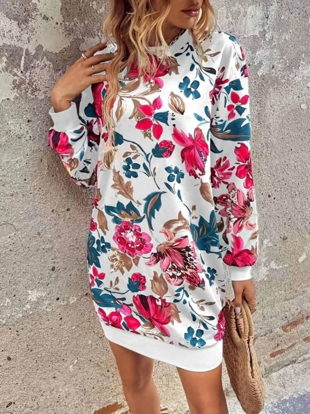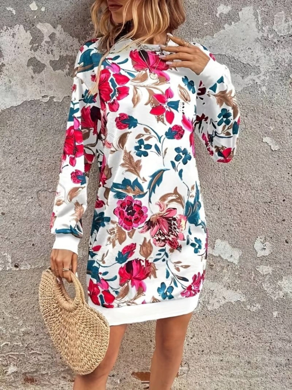 Kadın Uzun Kollu Bisiklet Yaka çiçek Baskılı şardonlu Dalgıç Elbise