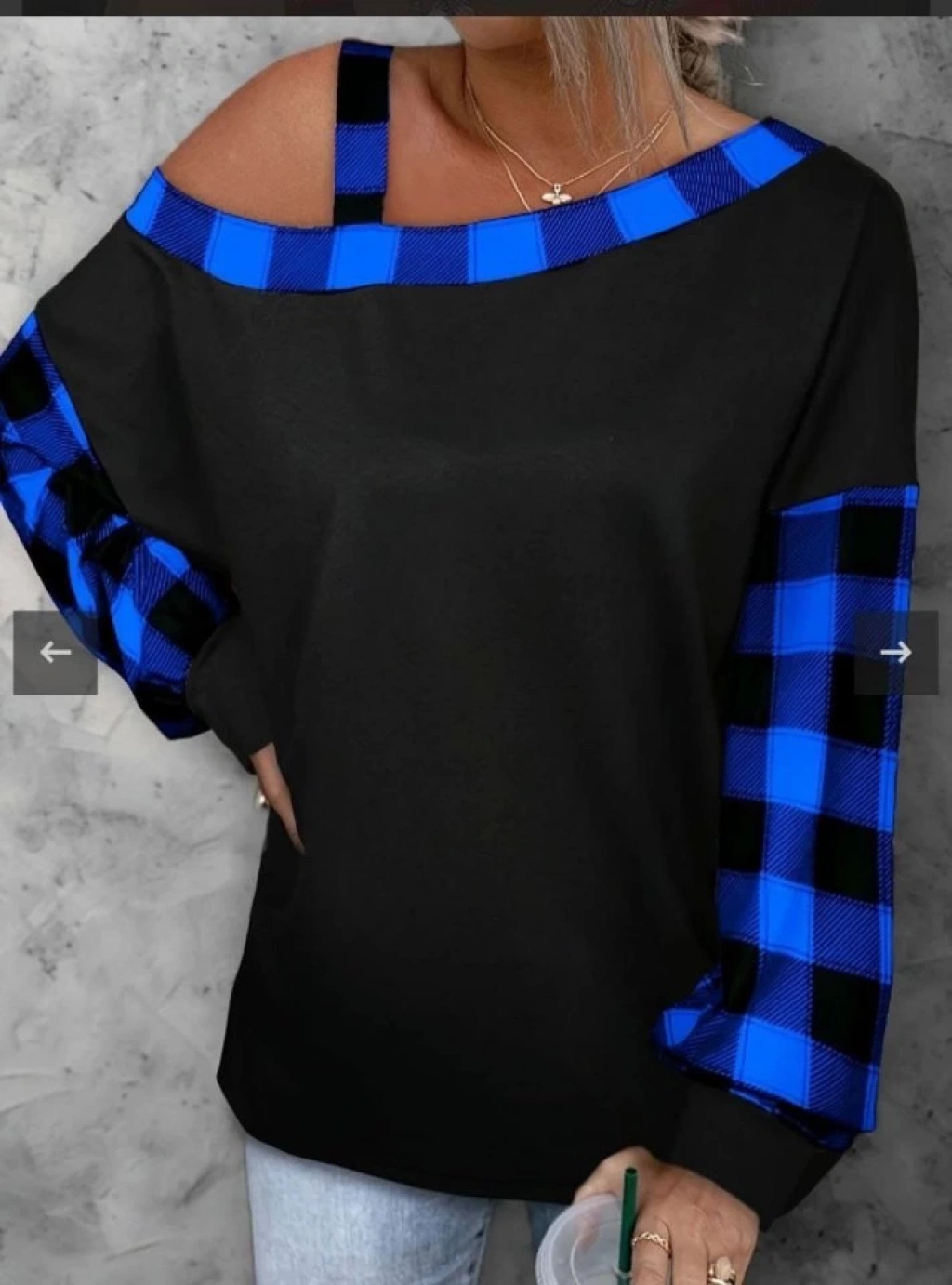 Kadın Kayık Yaka Asimetrik Kesim Ekose Detay Tunik