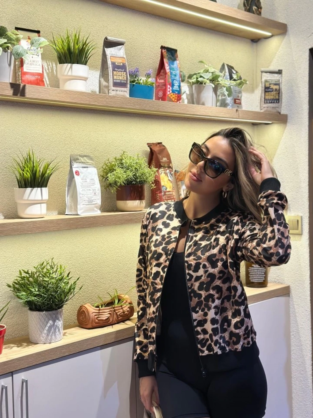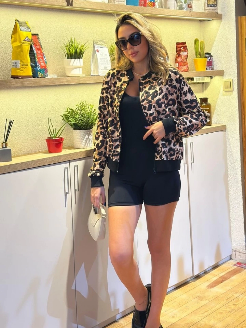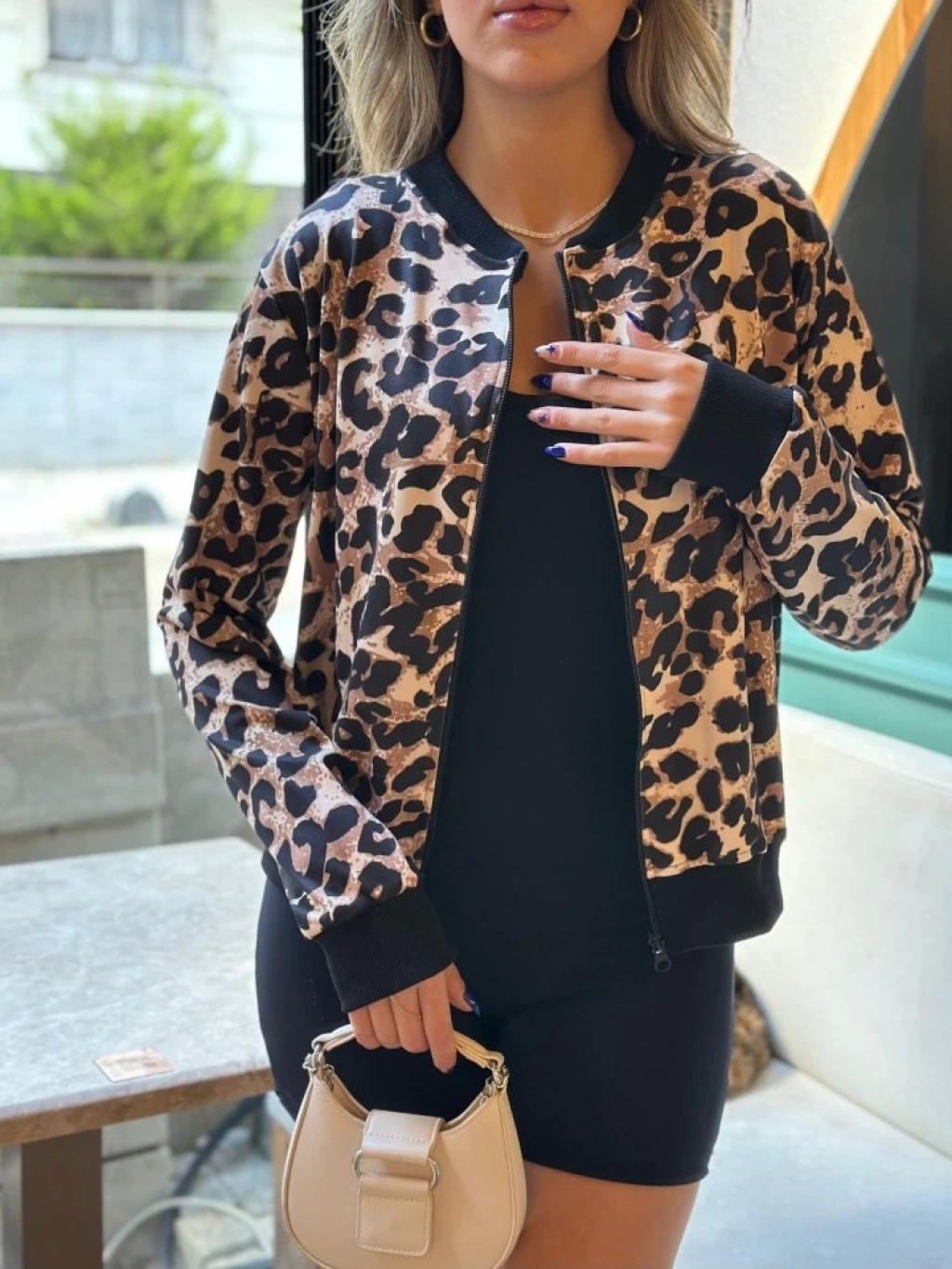 Kadın Uzun Kollu önden Fermuarlı Leopar Baskılı şardonlu Dalgıç Ceket