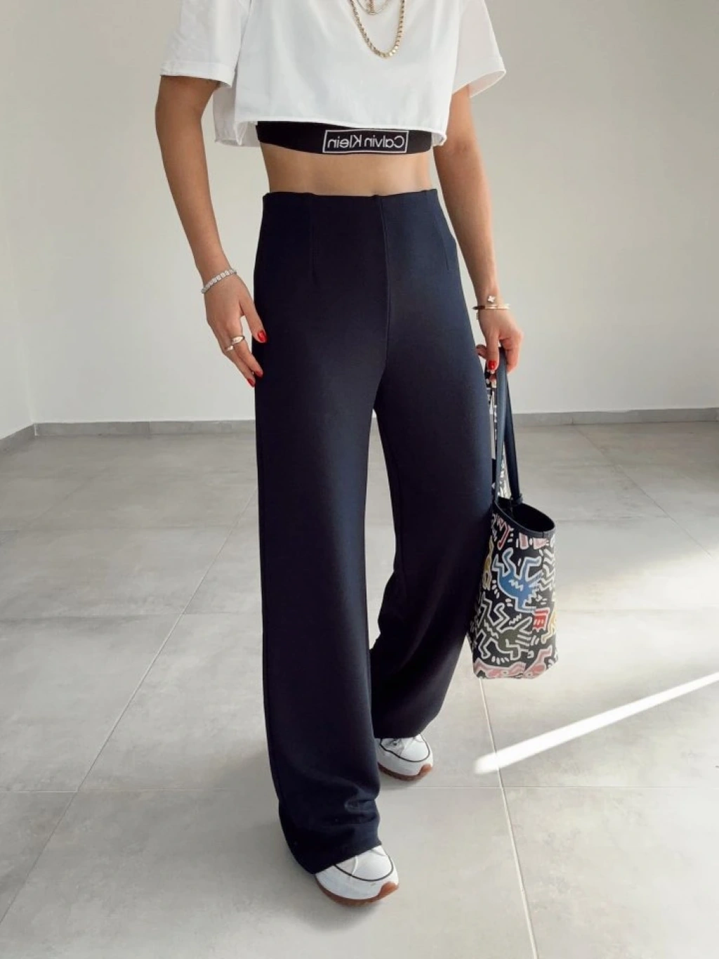 Kadın Krep Kumaş Gipe Detay Palazzo Pantolon