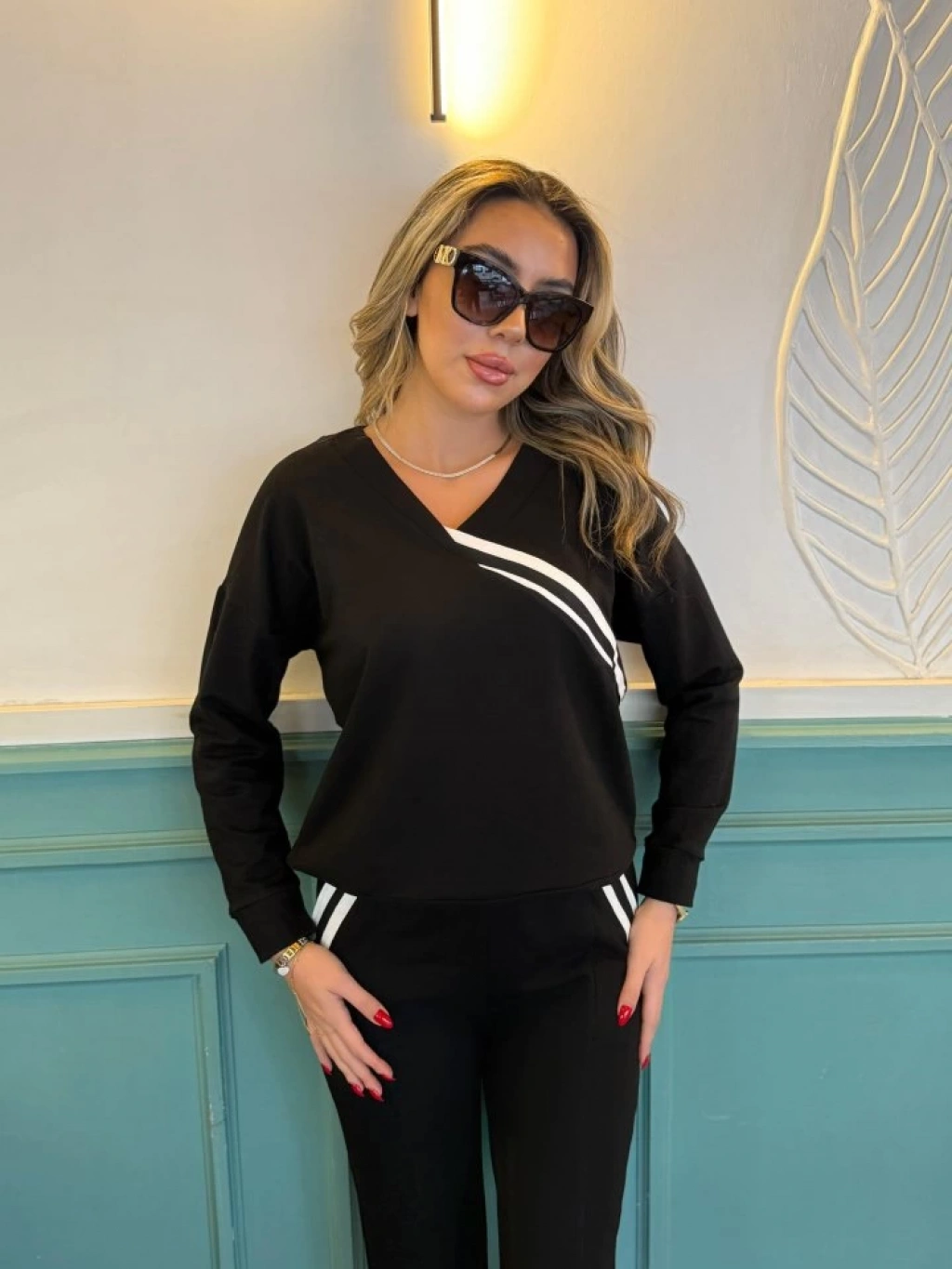 Kadın Ribana Detay Bluz Ve Ispanyol Paça Yırtmaçlı Pantolon Ikili Takım