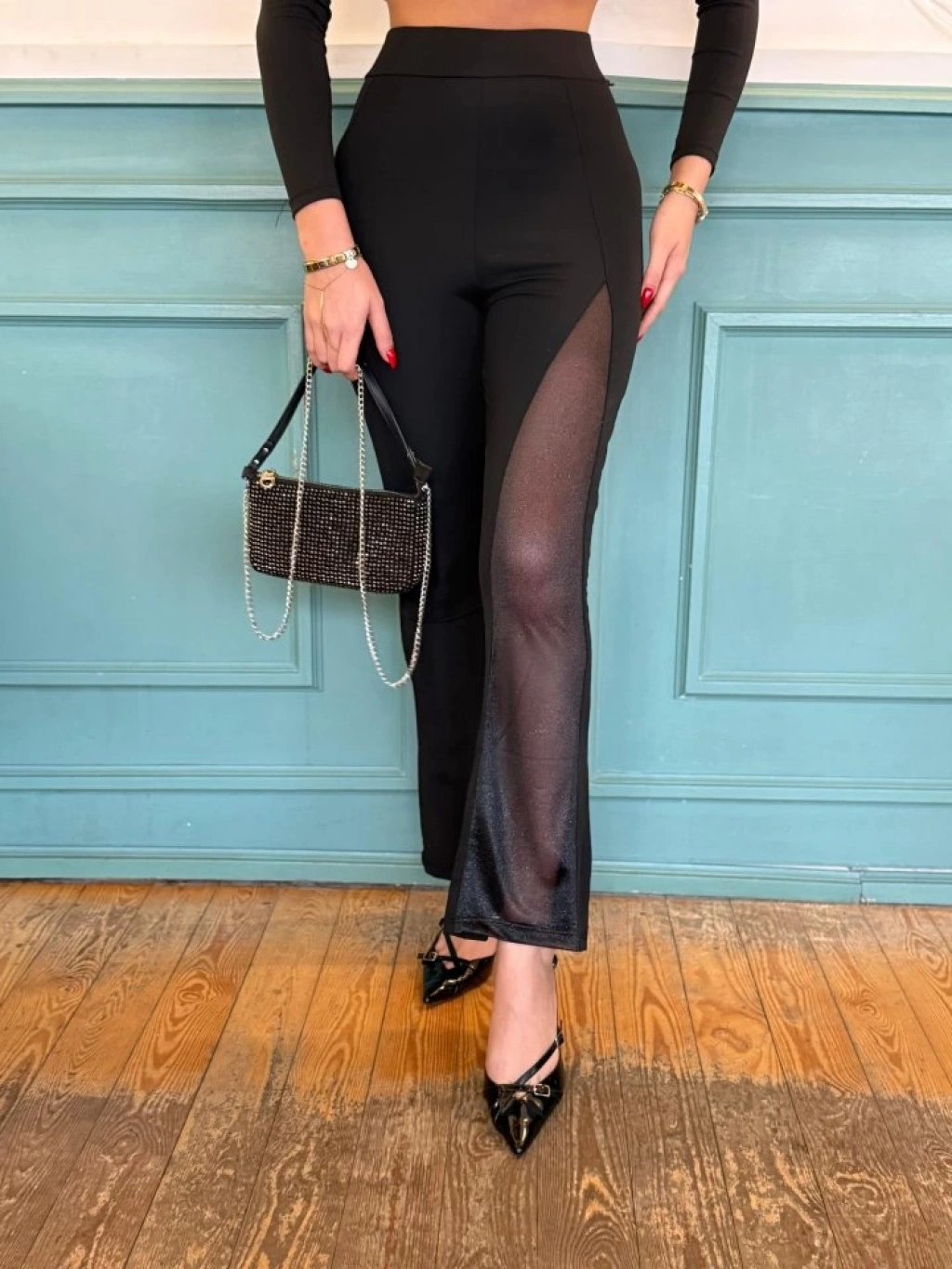Kadın Derin Simli Tül Detay Ispanyol Paça Dalgıç Pantolon