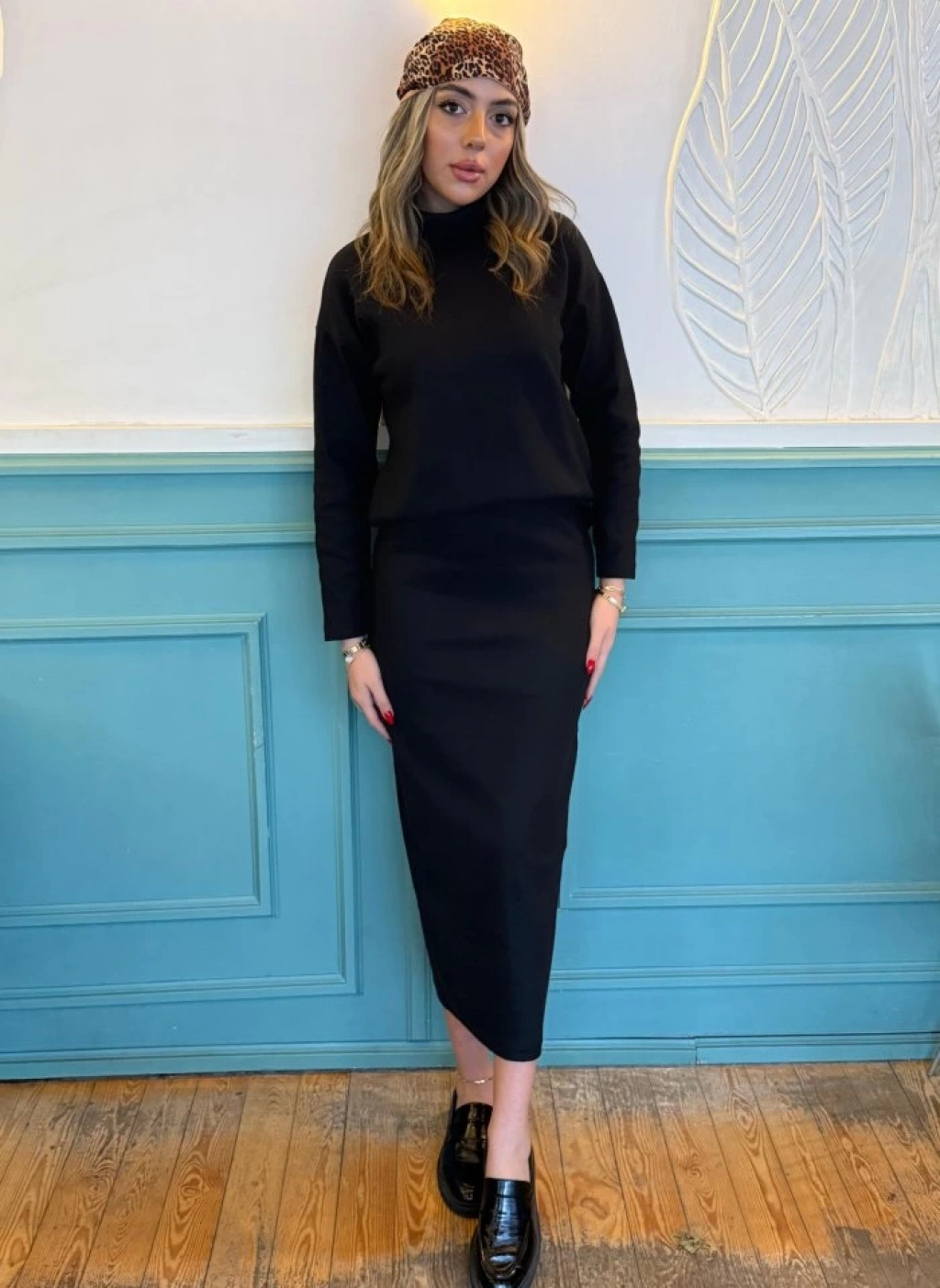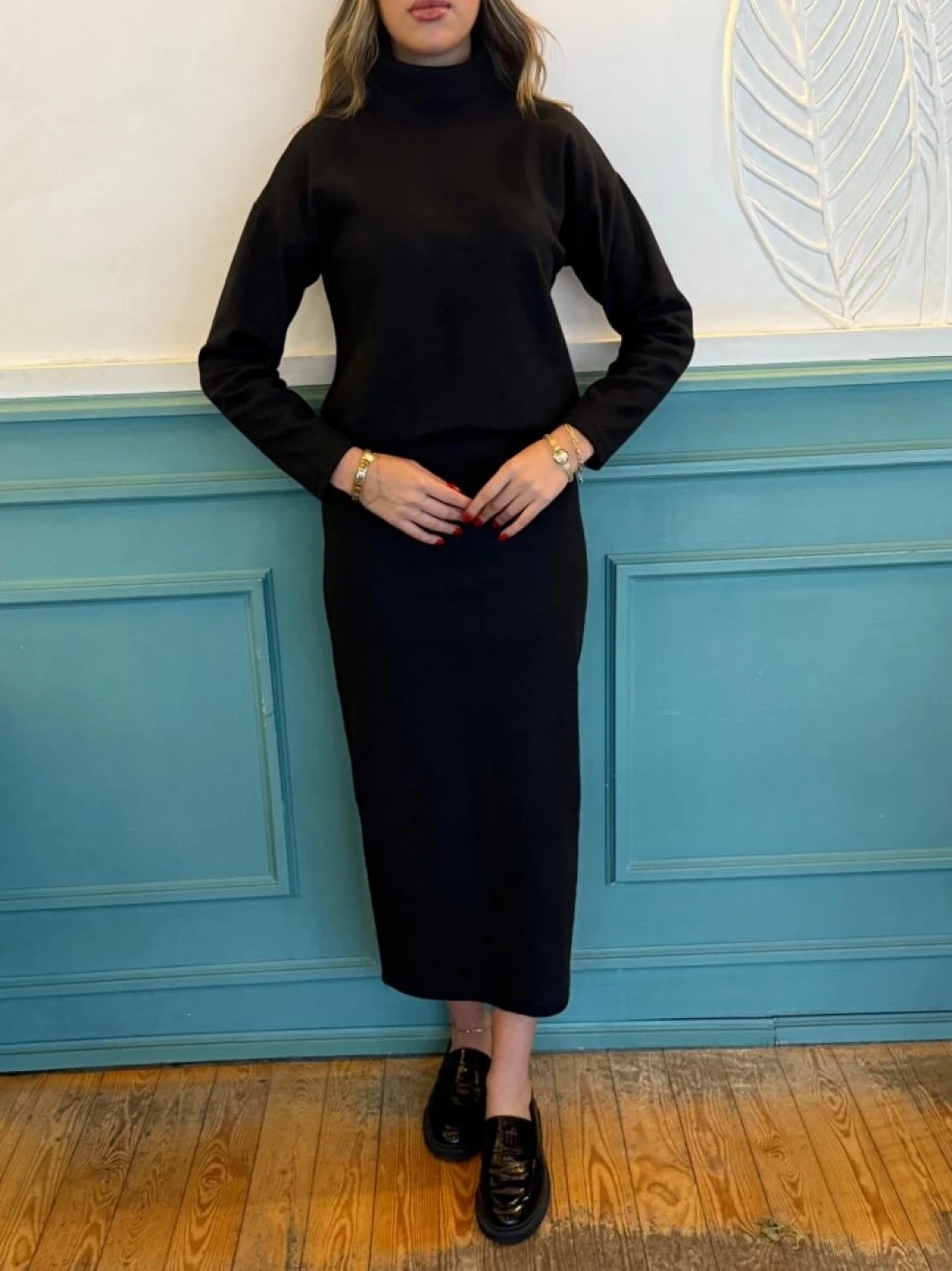 Kadın Uzun Kollu Balıkçı Yaka şardonlu Bluz Etek Takım