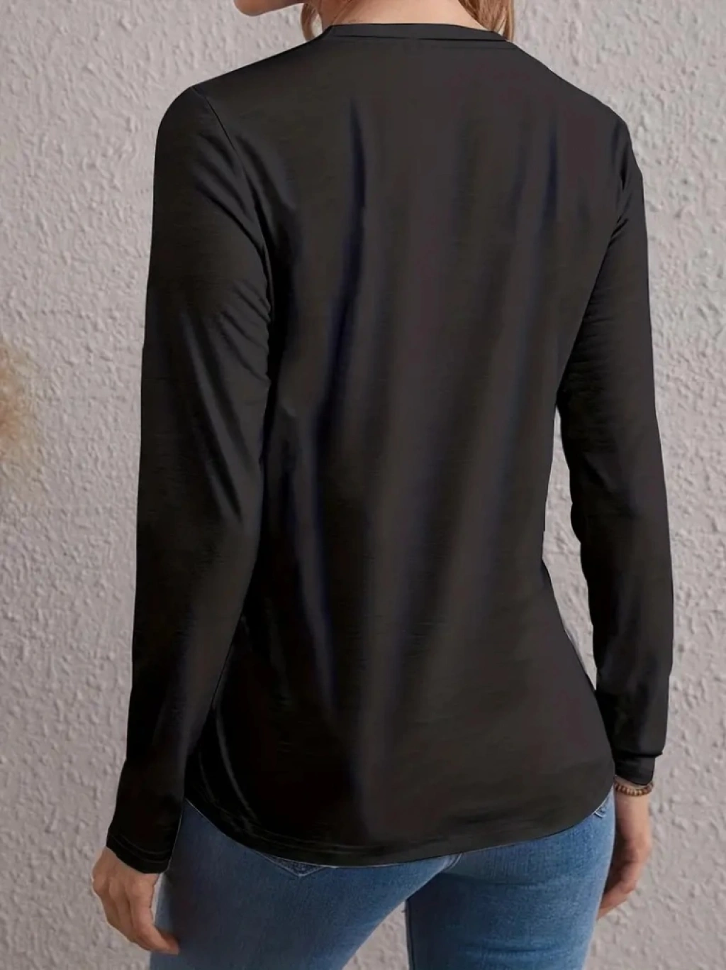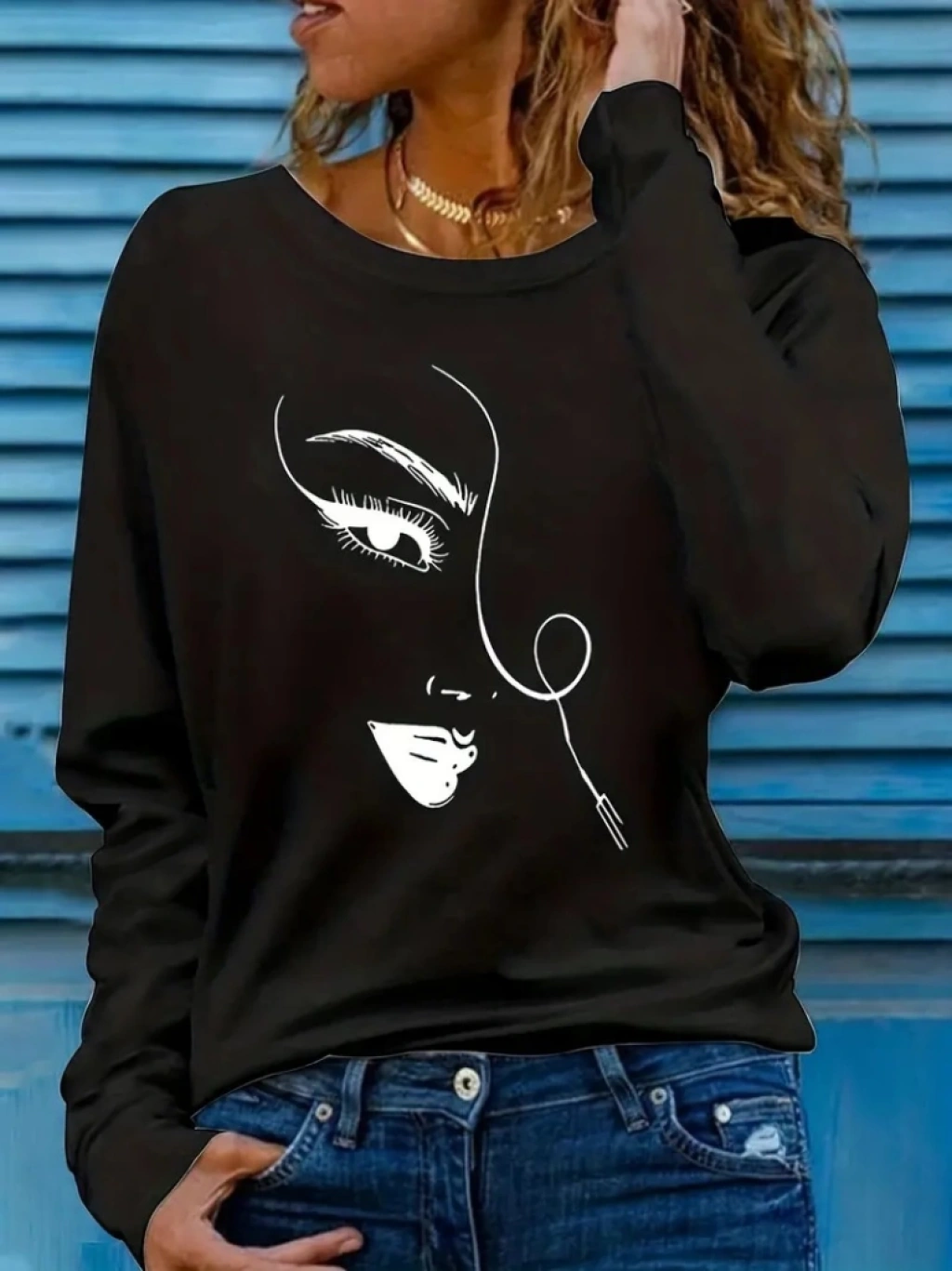 Kadın Uzun Kollu Bisiklet Yaka Yüz Desenli Viskon Bluz