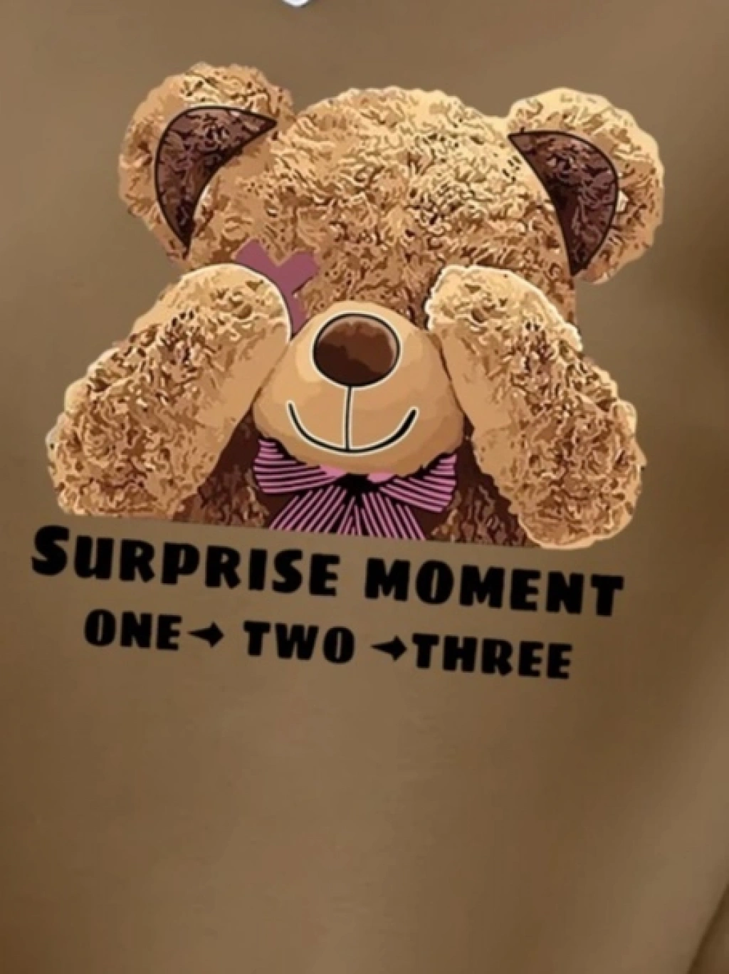 Kadın Uzun Kollu Bisiklet Yaka Ayıcık Desenli Viskon Iki Iplik Bluz
