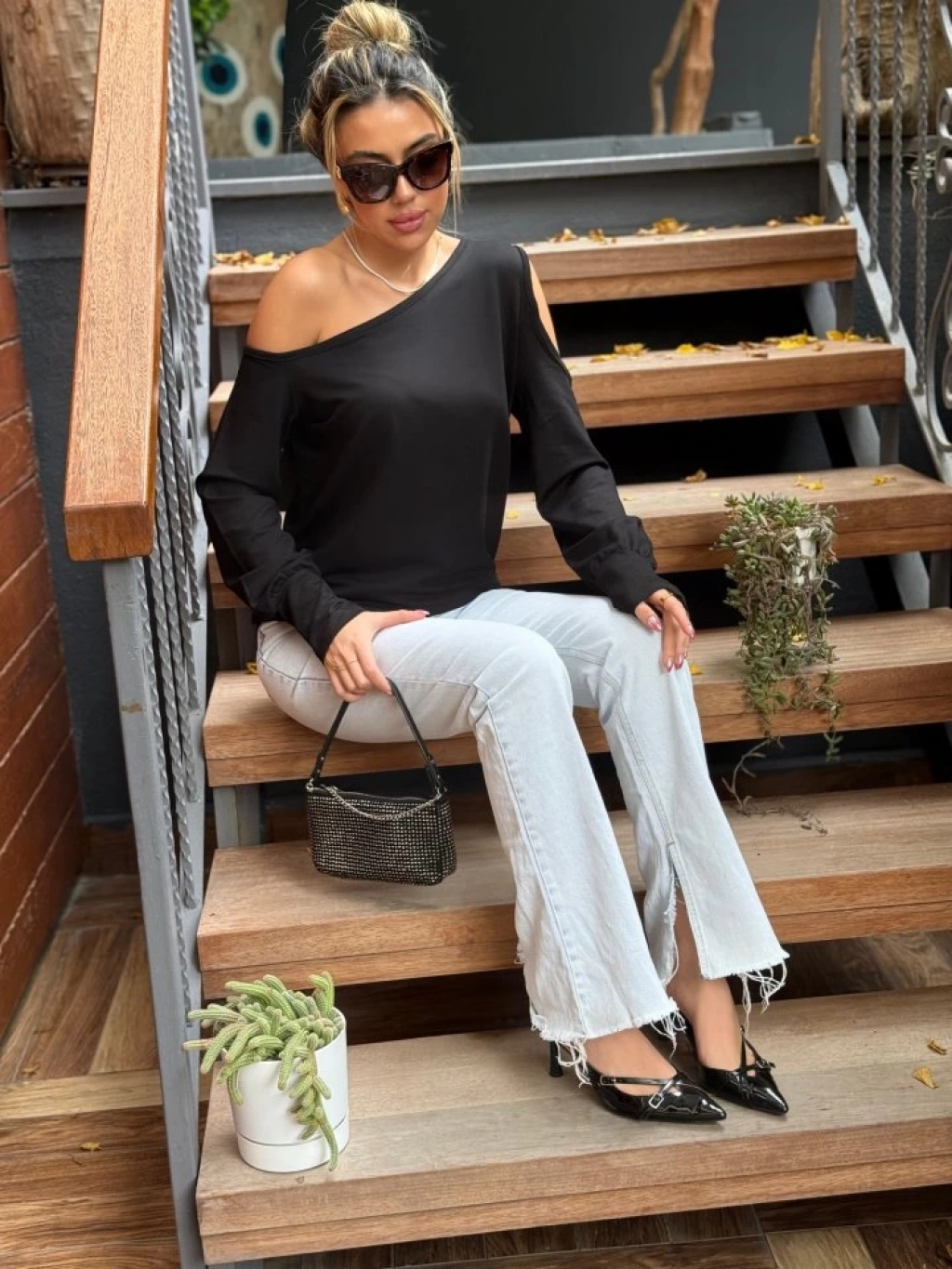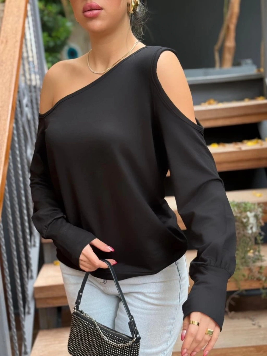 Kadın Omuzdan Açık Askılı Viskon Iki Iplik Bluz