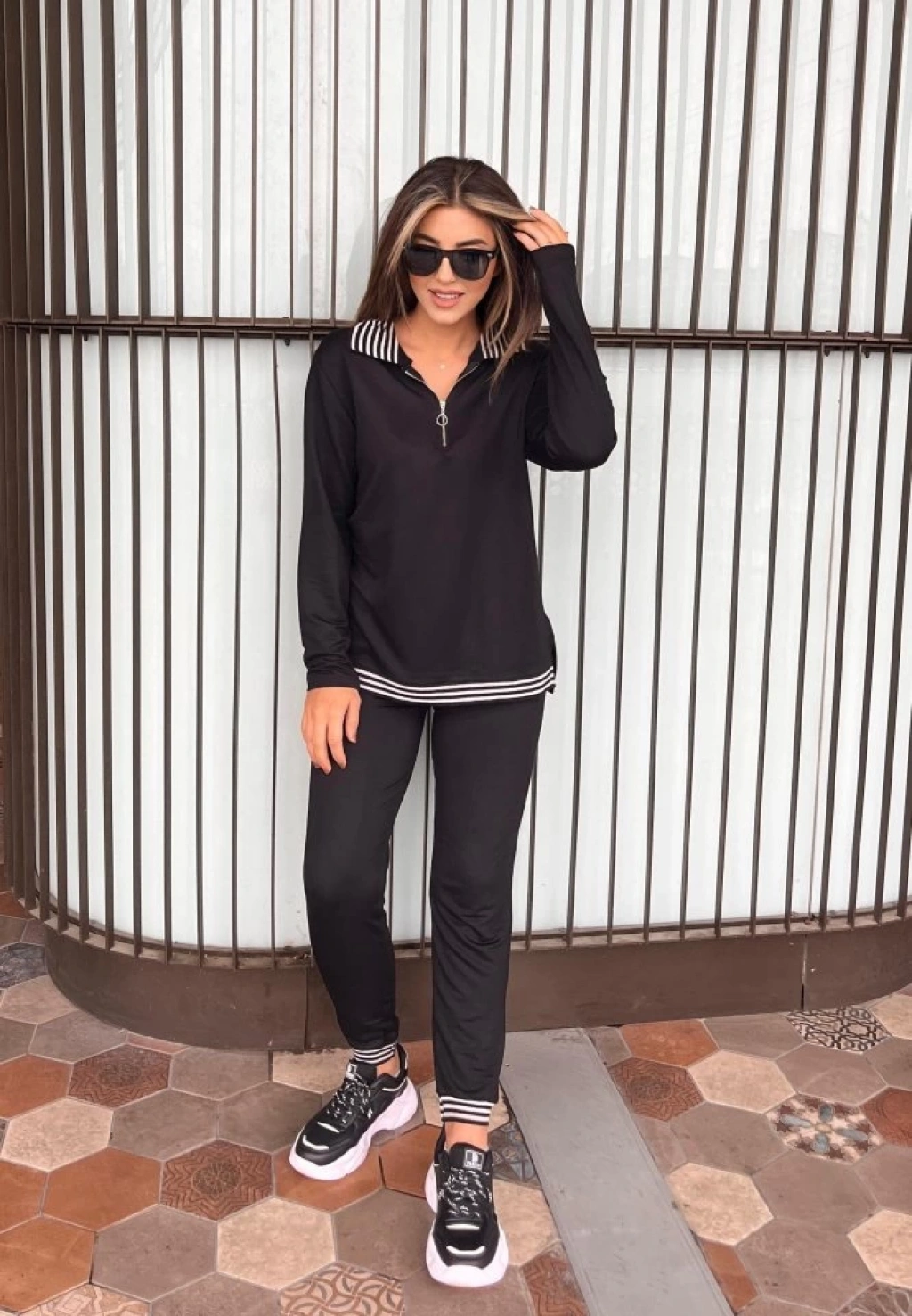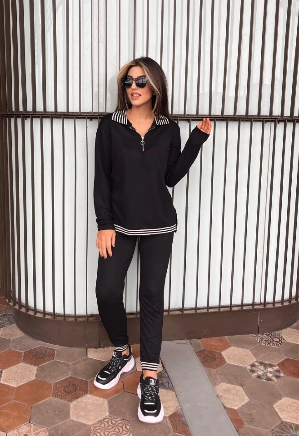 Kadın Uzun Kollu Ribana Ve Fermuar Detay Bluz Ve Yüksel Bel Pantolon 2li Takım