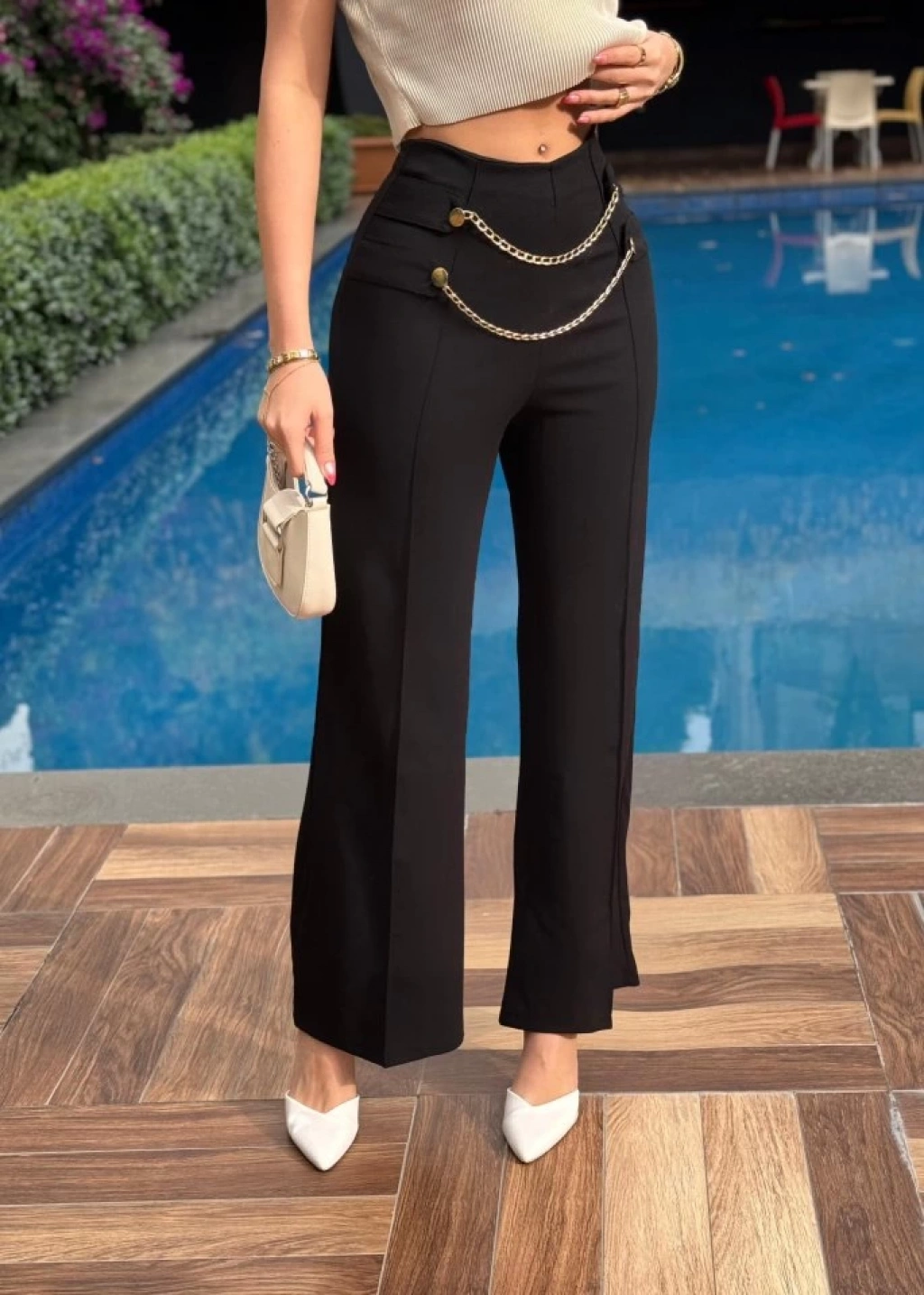 Kadın Beli Zincir Detay Ithal Krep Pantolon