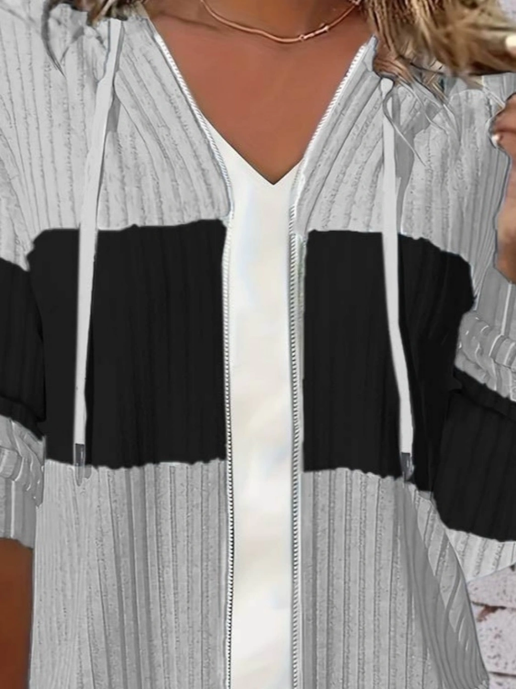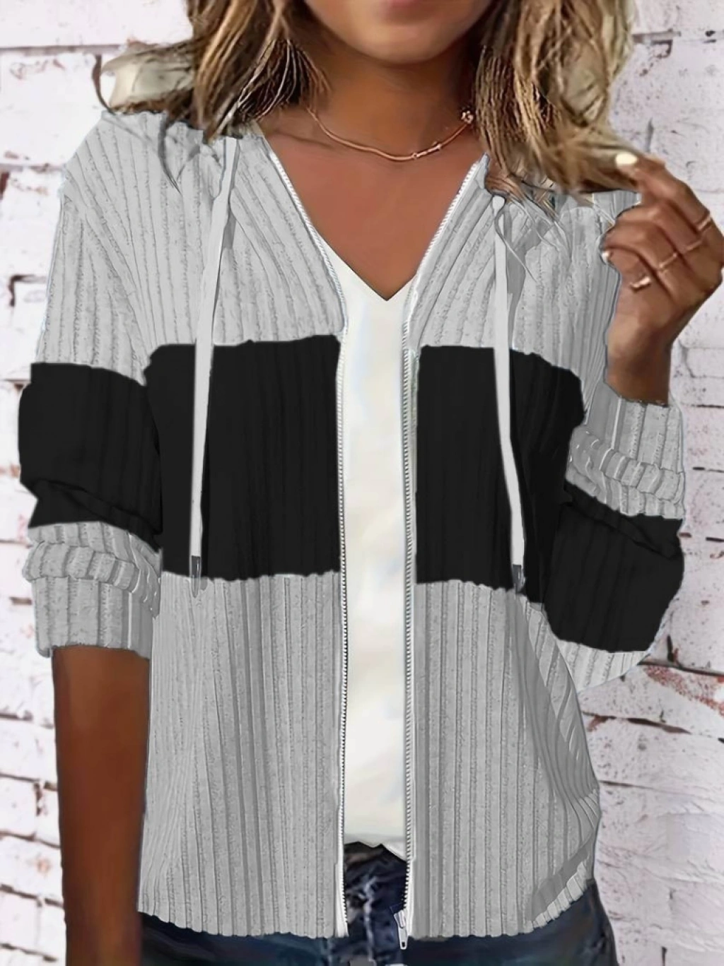 Kadın Uzun Kollu Kapşonlu önden Fermuarlı Blok Desenli şardonlu Kaşkorse Ceket
