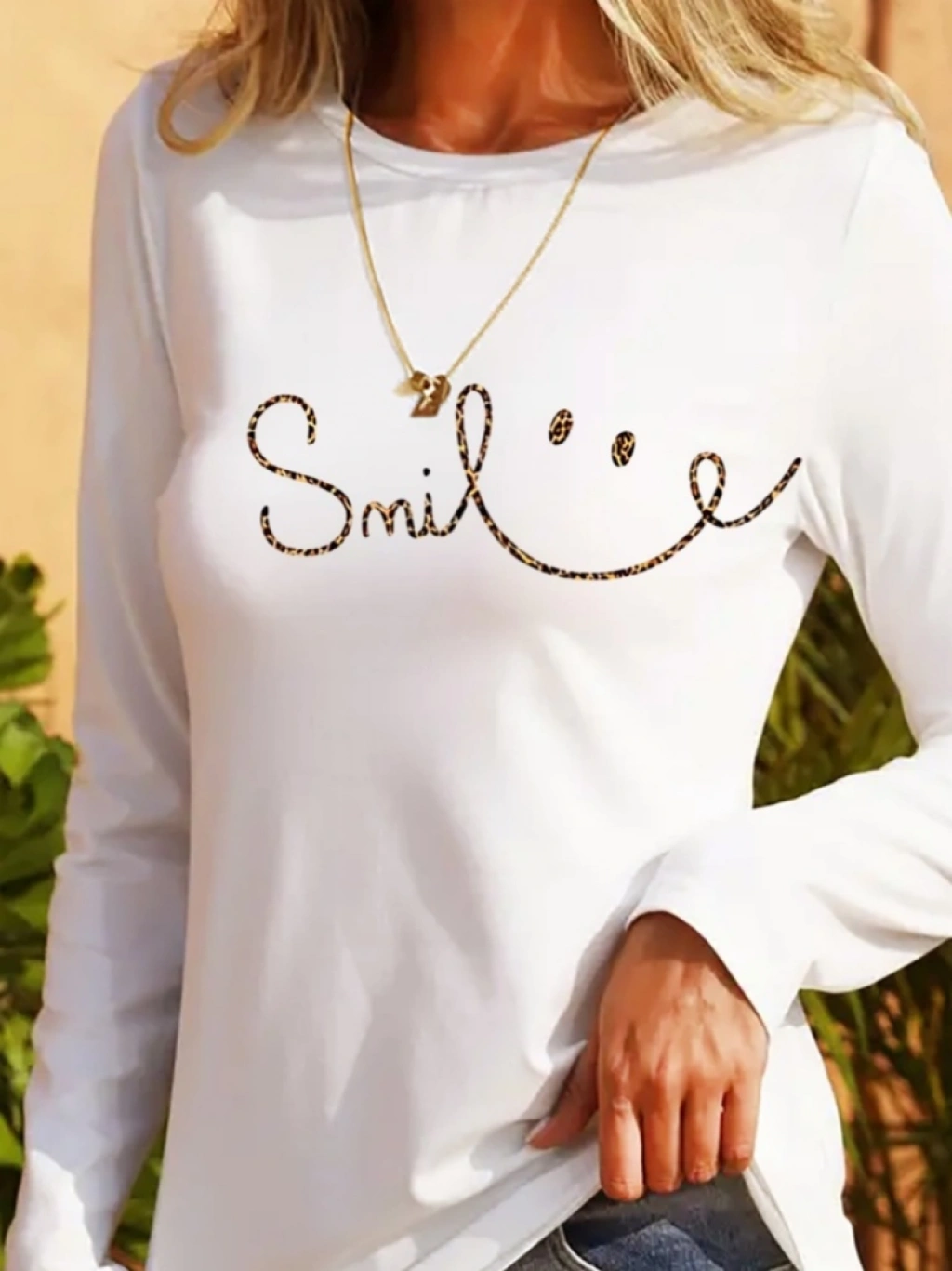 Kadın Uzun Kollu Bisiklet Yaka Gülümseyen Surat Desenli Viskon Bluz