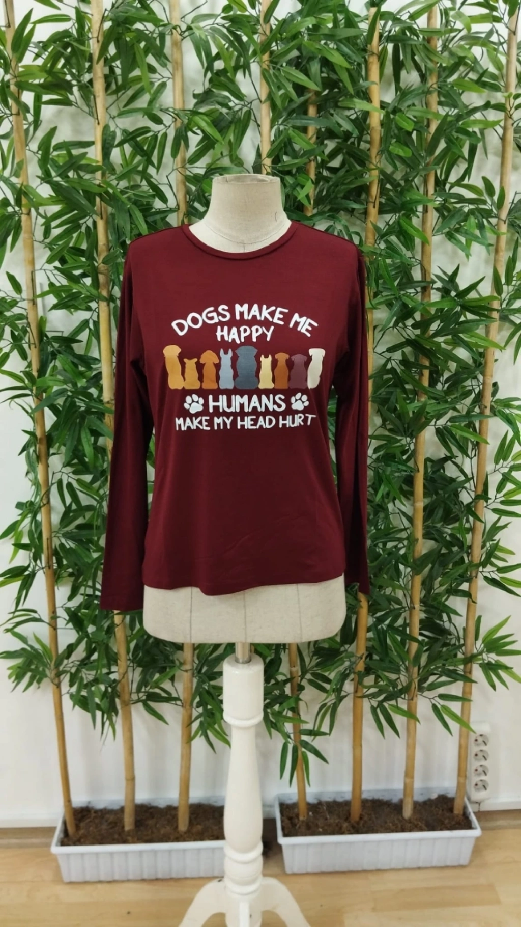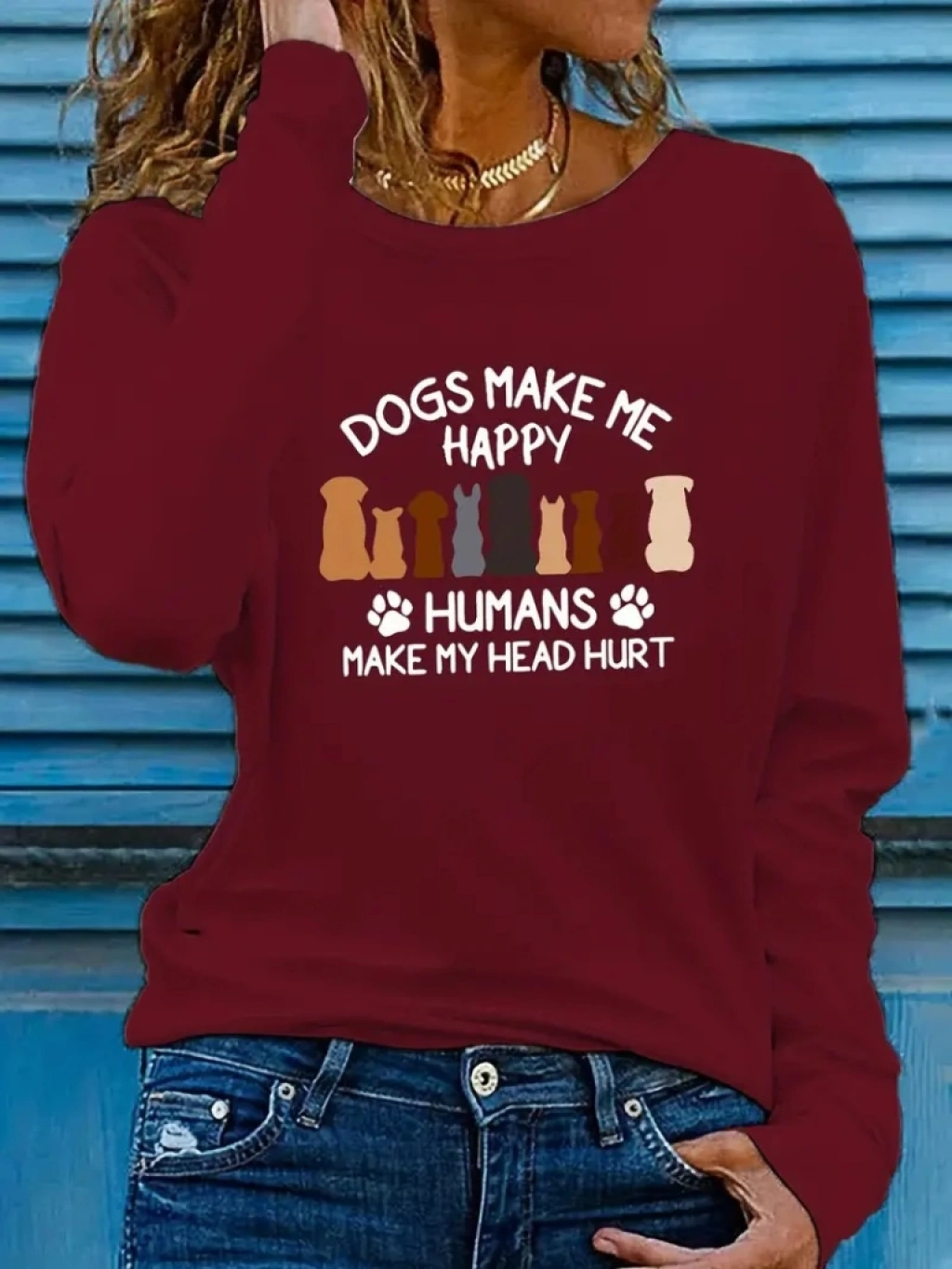 Kadın Uzun Kollu Bisiklet Yaka Köpek Resimli Viskon Bluz