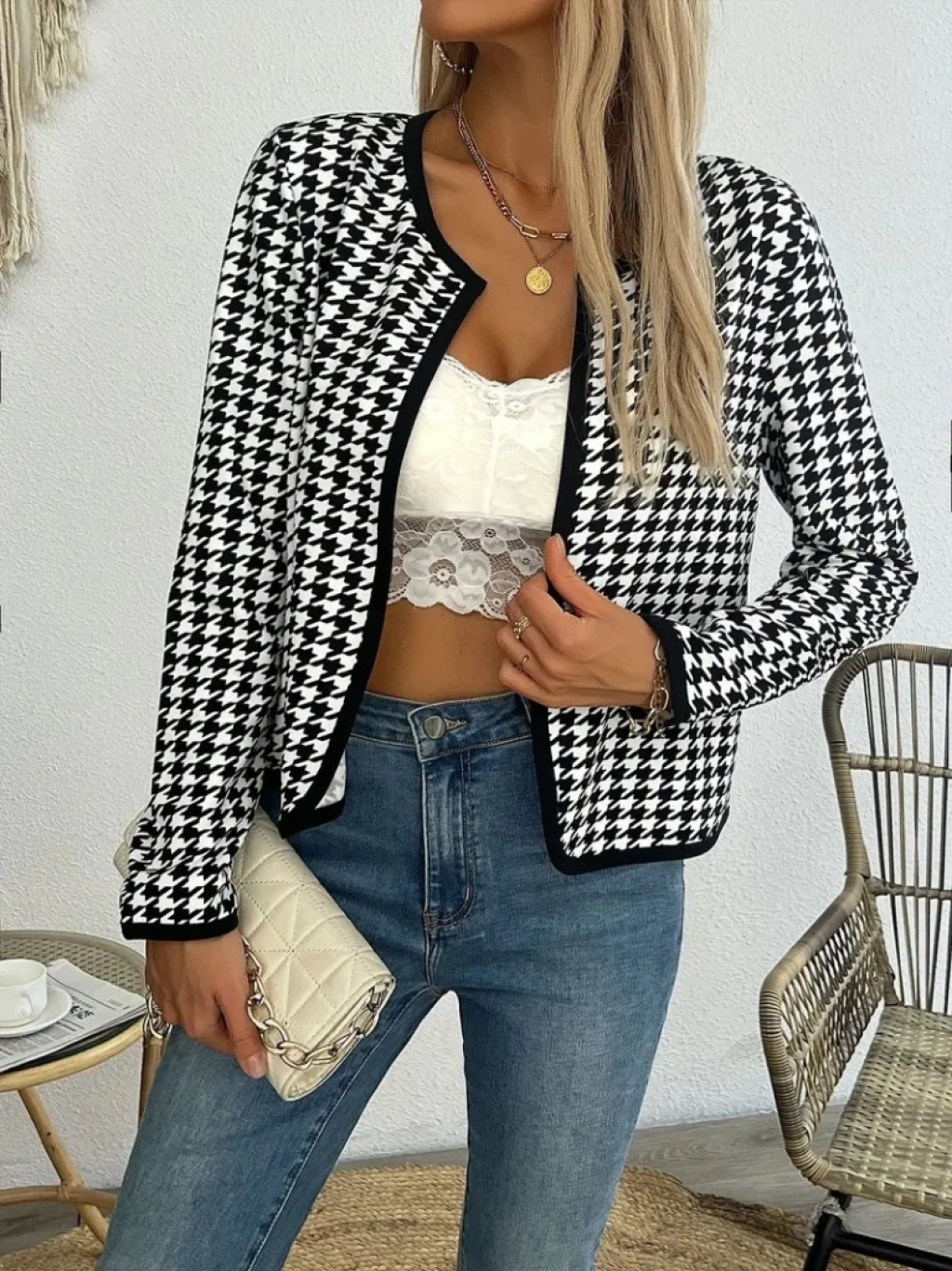 Kadın Uzun Kollu Kaz Ayağı Desenli şardonlu Dalgıç Ceket