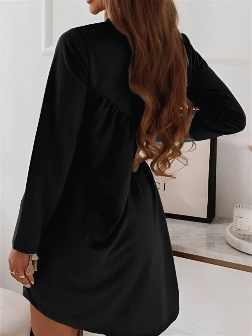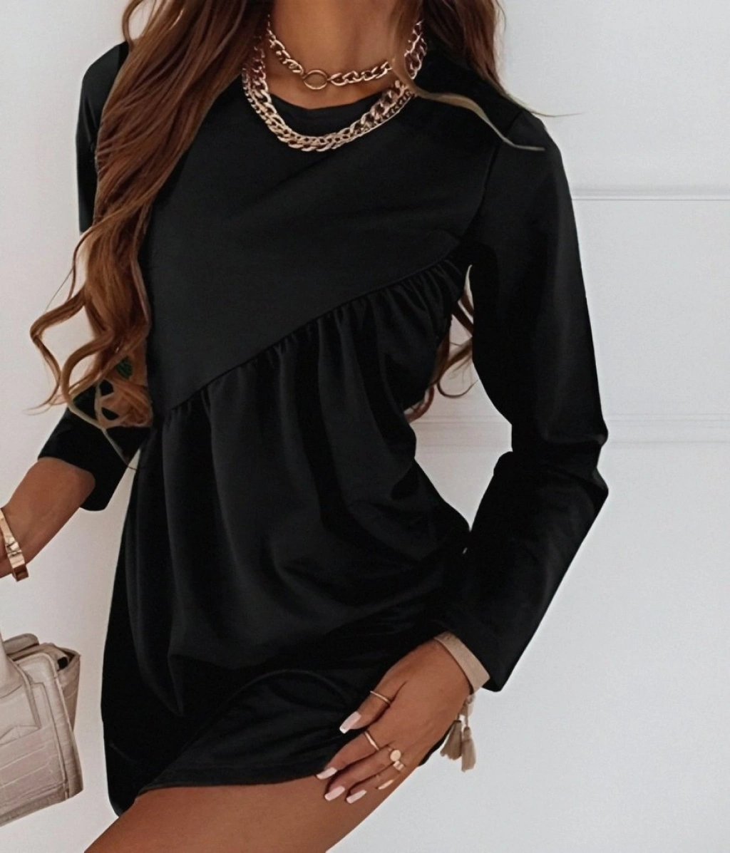 Kadın Uzun Kollu Bisiklet Yaka çapraz Büzgü Detay Iki Iplik Mini Boy Elbise